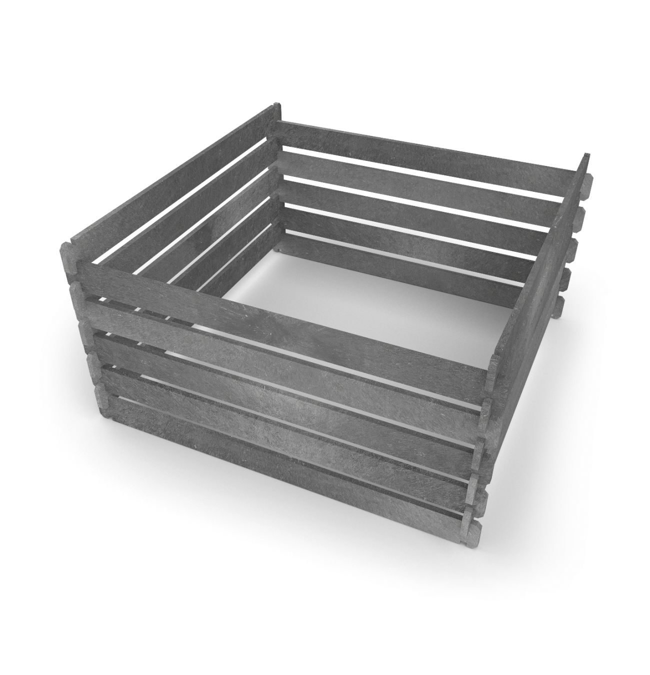 Plastový bezúdržbový kompostér se skládá z jednoho konstrukčního „prkna“, které je na konci opatřeno zámky, jimiž do sebe přes roh jednotlivá prkna zapadají. Jen přiložíte k sobě, doklepnete rukou a dvě prkénka jsou spojena. Takto ze čtyř vytvoříte základní patro. Pak už jen jejich postupným přidáváním upravíte výšku kompostéru podle svých představ. Plastová prkna na kompostér lze zakoupit samostatně. Standardní výška kompostéru je 940 mm a základna 1 200 x 1 200 mm.