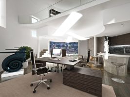 Vstup do obytné části je z prostoru poslední stanice celoskleněného výtahu. Naprosto unikátní byt s kruhovým půdorysem je propojen schodištěm při obvodu věže. Ve spodní části je navržen obývací pokoj s kuchyňským koutem, spíží a toaletou, ve střední části pracovna s koupelnou a toaletou, v nejvyšším patře kruhová ložnice s koupelnou a toaletou. Denní světlo je zajištěné střešními okny.