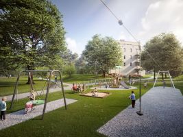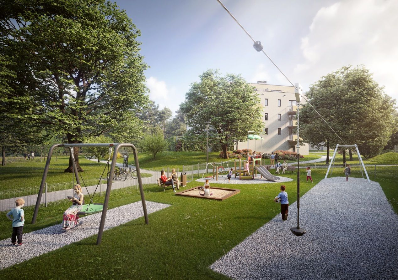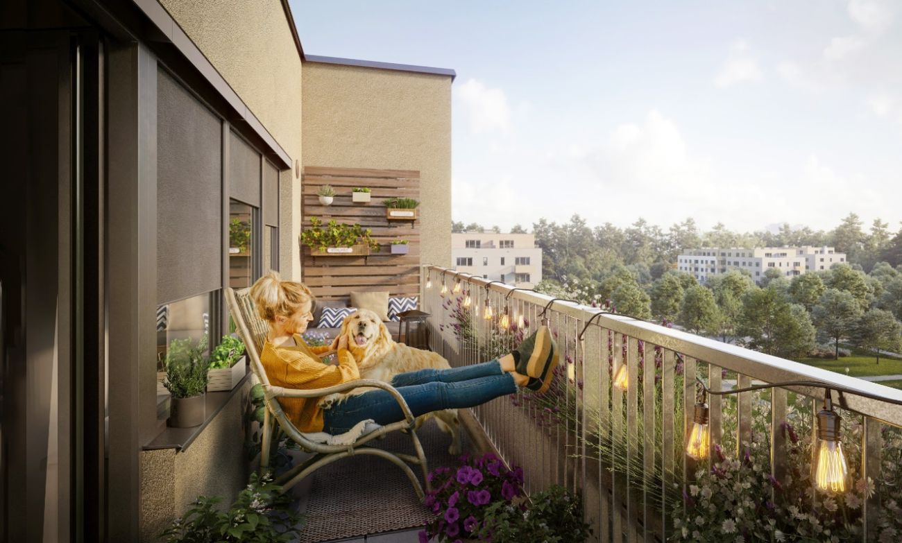 Bytové domy vyrůstají mezi rozlehlým zeleným parkem, celý areál proto budou propojovat prvky modrozelené infrastruktury, společné prostory pro setkávání, ale také klidná místa pro práci či odpočinek. Domy splňují přísné požadavky enviromentální certifikace BREEAM a dosahují velmi nízké energetické náročnosti PENB – B. Oproti referenční budově tak vychází úsporněji o 46 %.