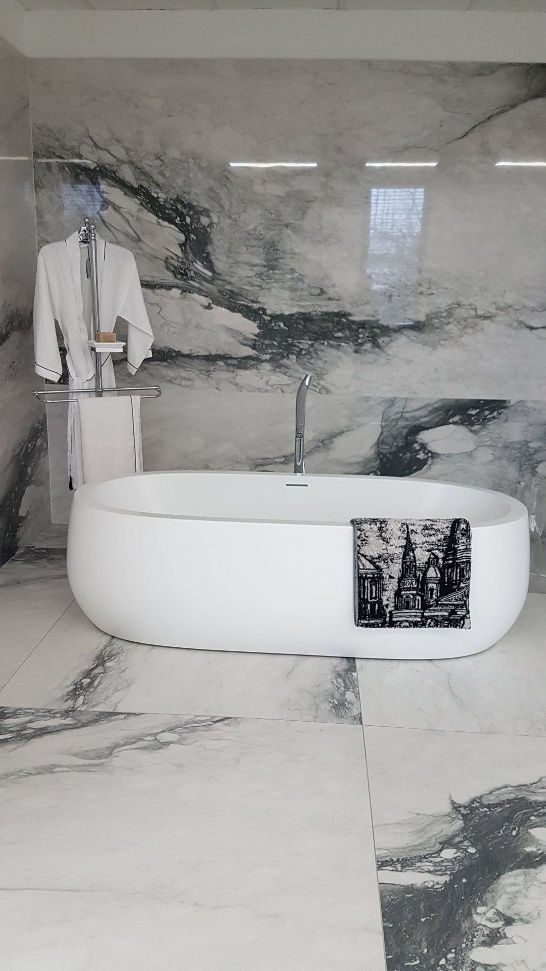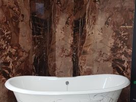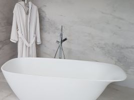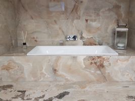 Pro milovníky luxusu jsou pak k mání vany z litého mramoru. Mají tepelně-izolační vlastnosti a vyznačuje se vysokou pevností, elegantním designem a stabilitou. Výrobky z litého mramoru jsou vyráběny technologií odlévání do forem, čímž se dosáhne stejnorodosti materiálu ve všech směrech. Největším kladem litého mramoru je fakt, že i když má sílu jen 30 mm, jeho nosnost je až 300 Kg.