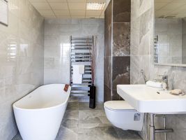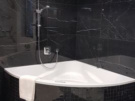 Stavba není sen - Javor apartmán - Nadčasový design do koupelny? Inspirujete se v horském apartmánu Javor, který sází na velkoformátové obklady
