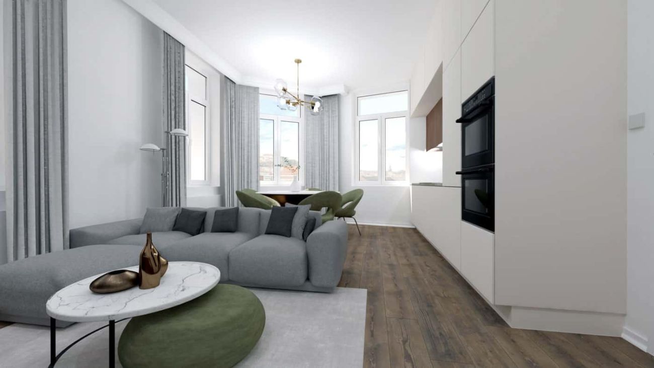 Stejně tak velmi citlivě budou tvořeny interiéry jednotlivých bytů i společných prostor. Architekti zde zachovávají eleganci historie a zároveň vkusně využívají moderní architekturu. Byty budou mít vinylové podlahy v dekoru dřeva, vkusné obklady i dlažbu. Koupelny budou vybaveny značkovými předměty.