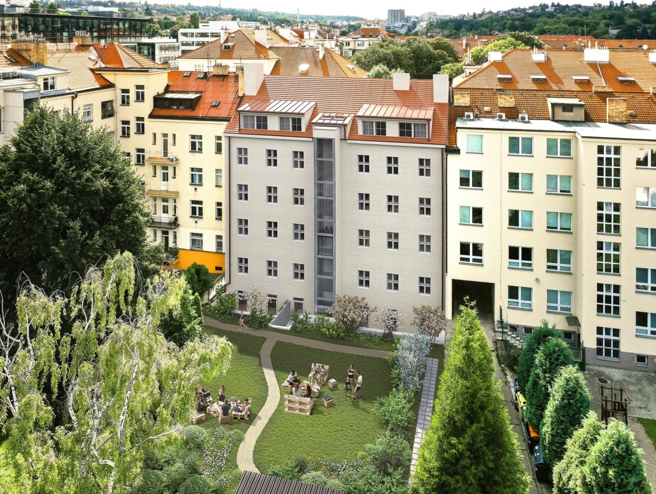 Moderní bydlení v duchu minulého století bude inspirováno bydlením ve Velké Británii. Objekt tak ponese odkaz svého stavitele Otakara Medka z Pardubic, který dům v roce 1929 postavil a zároveň i britskou estetiku s městskými dvorky, což ideálně snoubí historický genius loci a moderní technologie. Zelený vnitroblok nabídne prostor pro relaxaci, gril zónu a místa pro piknik a posezení s přáteli.