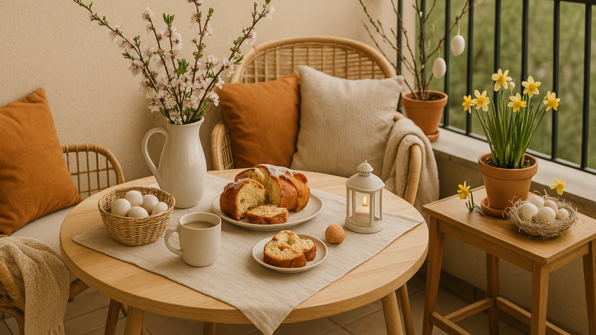 Ať už bydlíte v bytě s malým balkonem nebo v domě s prostornou terasou, venkovní prostor má jednu velkou výhodu. Dokáže rychle změnit atmosféru celého dne. Velikonoce jsou přirozeně spojeny s jarem, svěžestí a probouzející se přírodou. Proč si tedy nedopřát chvilku venku, obklopeni květinami, velikonočními barvami a příjemnými materiály?