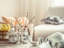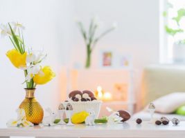 Jarní výzdobu spojenou s Velikonocemi udělejte tak, aby vám do domu vnesla sluníčko, barvy a dobrou náladu. To zařídí především květy, proto vytáhněte květináče a vázy a začněte. Co by to bylo za jarní výzdobu bez velikonočních dekorací? Nezapomeňte proto na tradiční symboly vajíček, peříček či stylového nádobí. Vhod přijdou i ošatky, košíky a další dekorace pro jarní náladu.