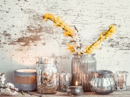 Jako dekorace použijte tu pravou přírodu. Natrhejte květy nebo kočičky, zvolte cibulnaté kvetoucí rostliny. Cenným zdrojem inspirace jsou aktuální trendy. Návrháři sází především na souhru jemných odstínů pastelových barev s přírodními prvky. Setkat se můžete také s čirým sklem, kovovými odlesky a přirozeným půvabem živých květin v netradičních nádobách. Efektní jarní dekorací, jež prakticky nic nestojí a přitom vypadá úžasně, jsou pokroucené vrbové proutky a větvičky okrasných keřů a stromů.