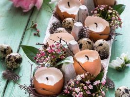 Co se květinové výzdoby týká, vždy je lepší zvolit živé květiny, kterých jsou teď plné zahrádky. K jaru se hodí narcisy, tulipány, případně další cibuloviny. Působivou květinovou výzdobu připravíte i pomocí nakvétajících větviček dřevin, keřů a stromů.
