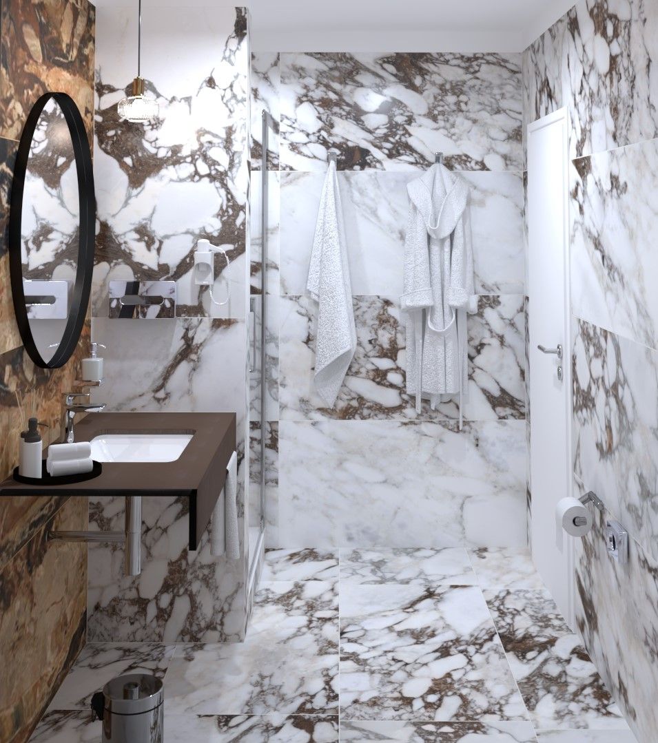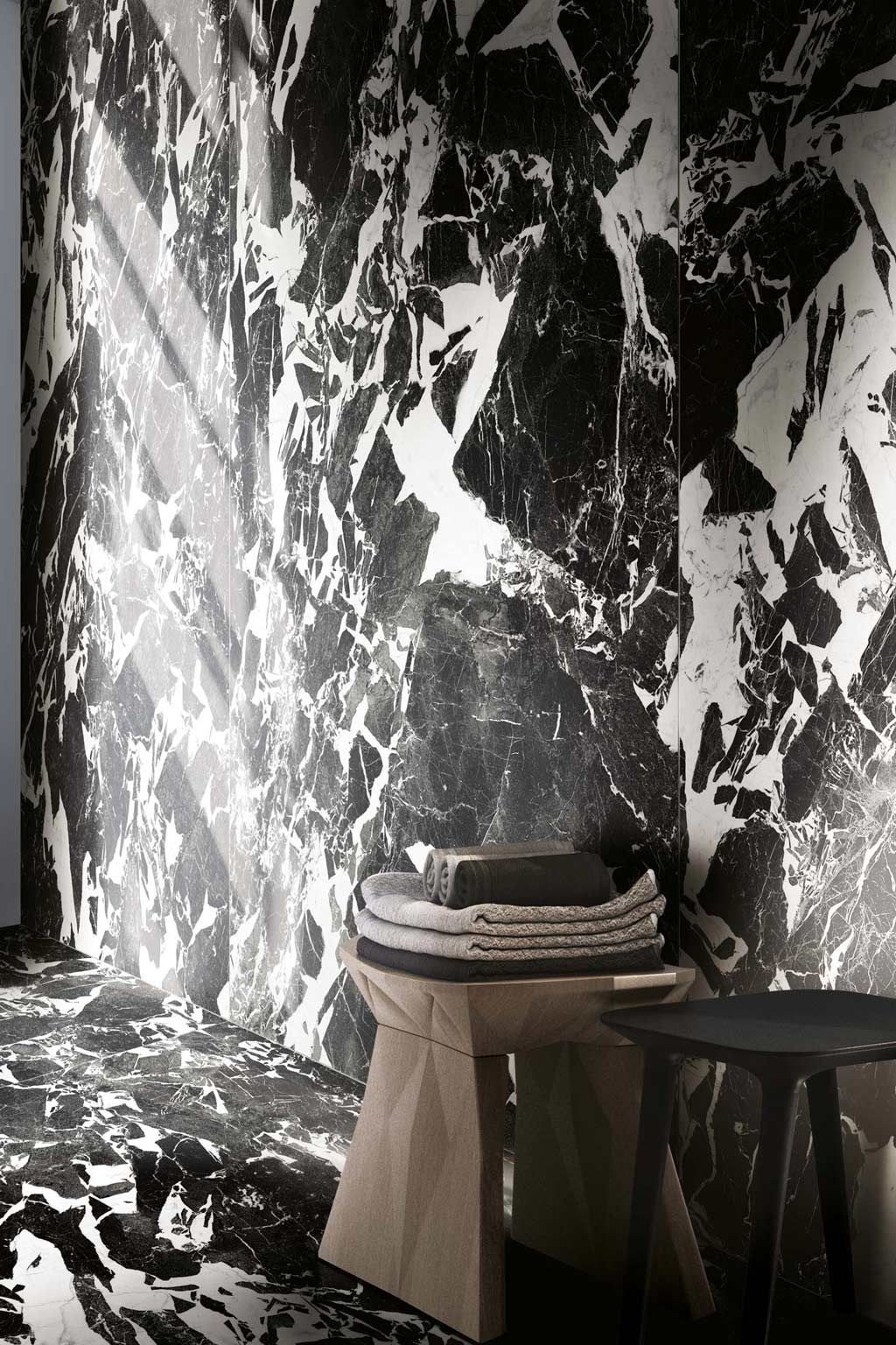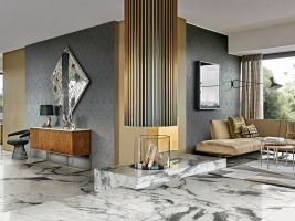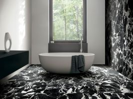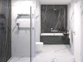 Náš tip: Černobílá kombinace nikdy nevyjde z módy, díky neutrálním barvám se dá sladit s různými doplňky a styly. Zvolit můžete například velkoformátové dlaždice ze série Black&White Marble. Na velkém prostoru vynikne jejich jedinečná kresba. Dalšími zajímavými velkoformátovými sériemi jsou i Liguid Cosmo či Bijoux de Rex.