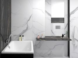 O velkoformátových obkladech do koupelny panuje spousta mýtů. Co je ale jisté, že tyto formáty dodají každé koupelně luxusní a reprezentativní nádech. Luxusně ale působí i v obývacích pokojích či vstupních halách. Velké obklady jsou vhodné jak do prostorných koupelen v rodinných domech, tak do malých panelákových bytů. Pokud si tedy myslíte, že velkoformátové obklady a dlažby jsou určeny jen do prostorných místností, jste na omylu.