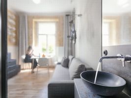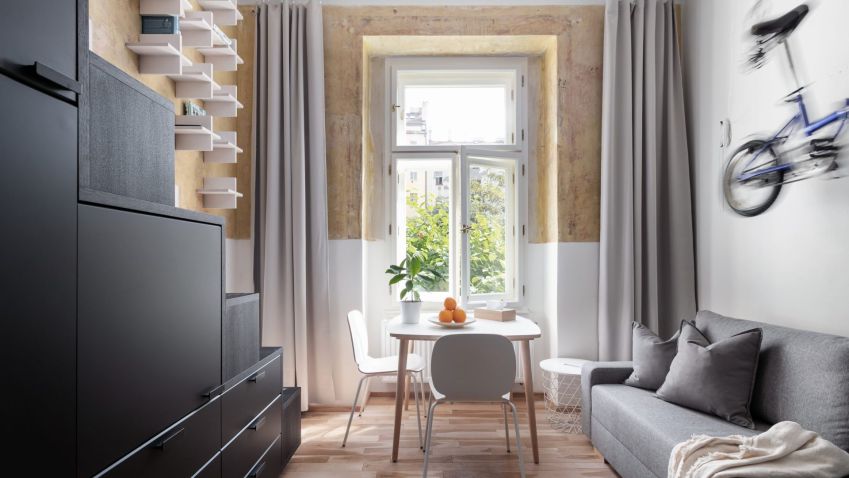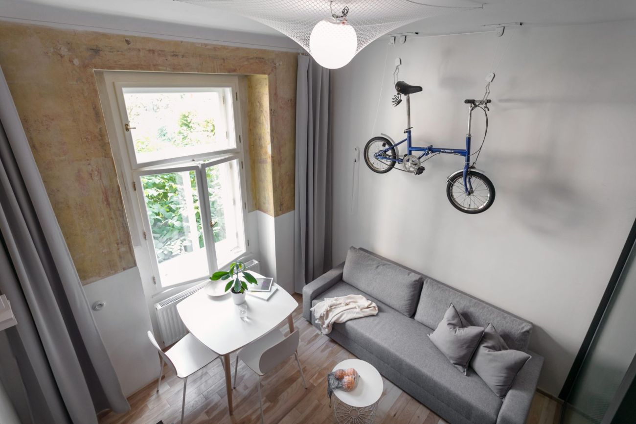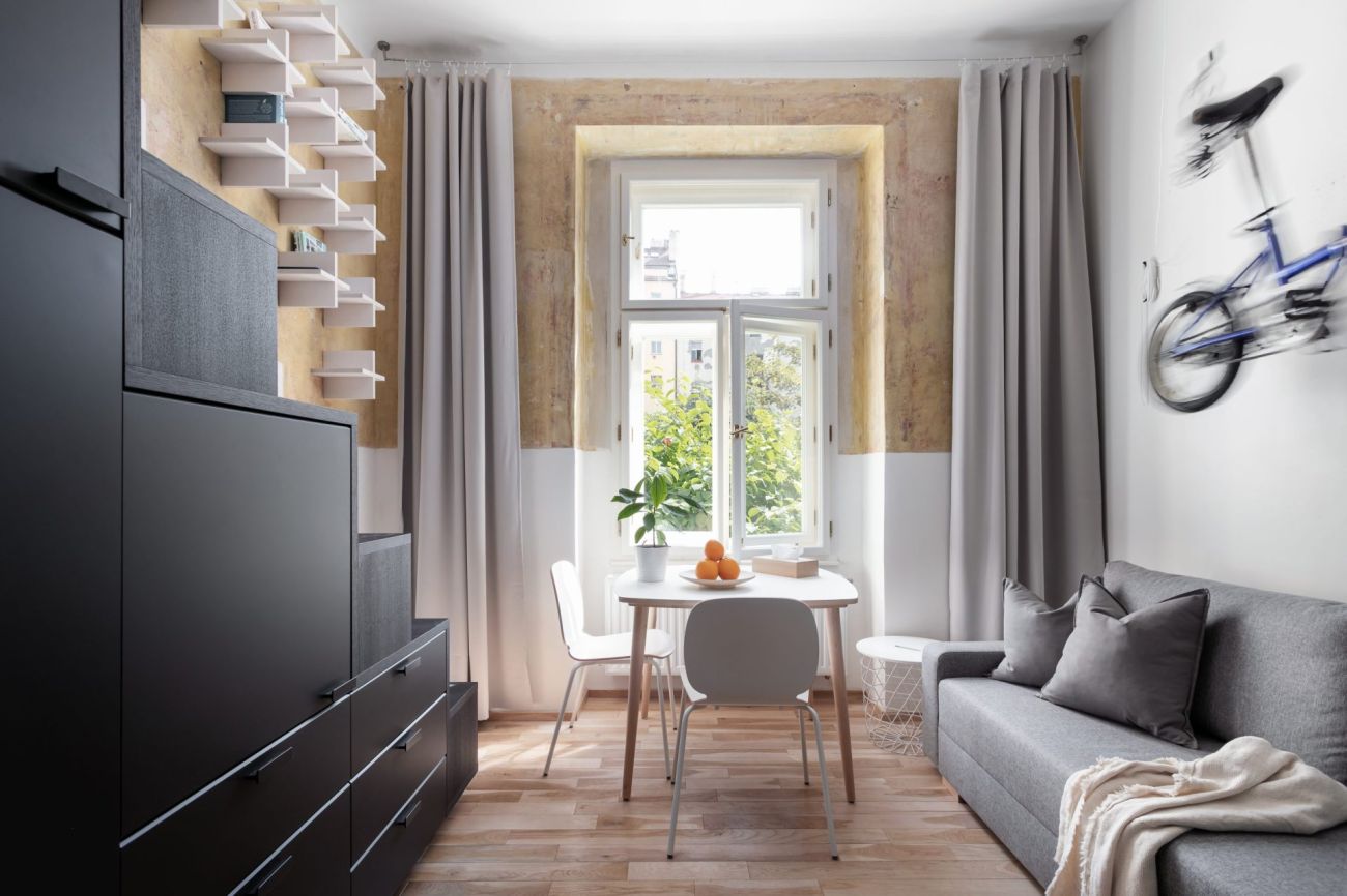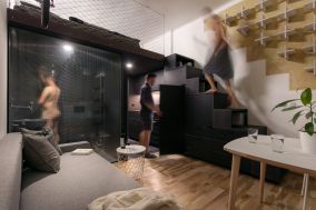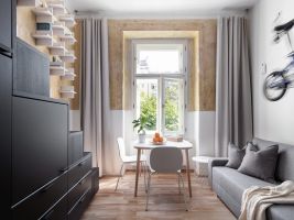 Díky rekonstrukci bytu ve starém činžovním domě na pražských Vinohradech vznikl moderní prostor pro aktivně žijící obyvatele. I přes to, že prostor, který kdysi býval správcovnou, má pouze 20m2 a jedno okno, vešlo se sem vše, co každý mladý člověk potřebuje, navíc ve velmi kreativním pojetí. Za rekonstrukcí stojí Studio Reaktor.