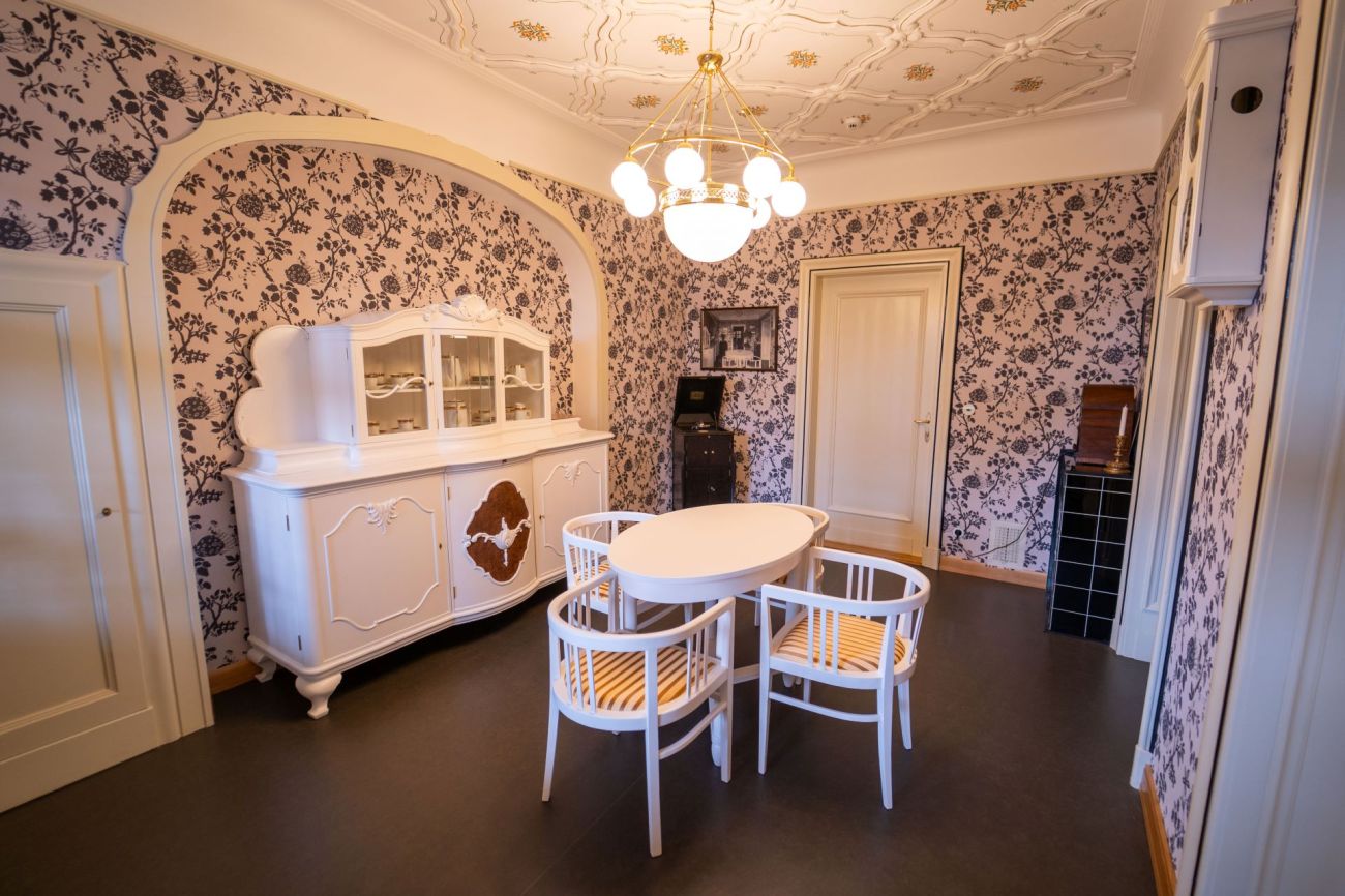 Výraznou proměnou prošla například ložnice paní Grossmannové, kde byla obnovena historická nika s postelí a dekorativními prvky podle fotografií z 20. let minulého století.