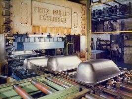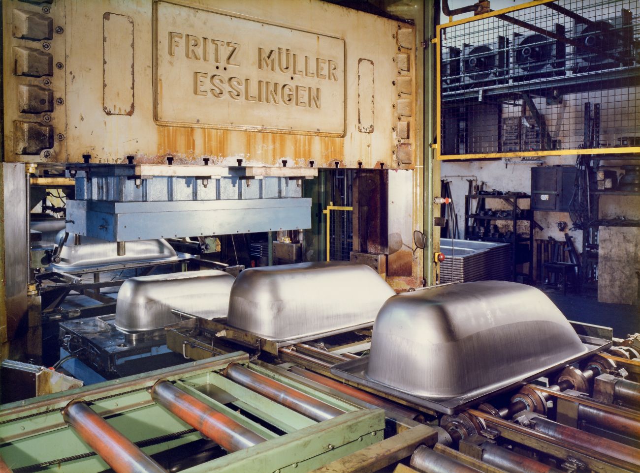K výrobě vanových výlisků používá Kaldewei ocel. Ta musí být totiž hlubokotažná, a tím pádem dobře tvarovatelná, ale současně i dobře smaltovatelná. V prvním kroku se deska z mikrolegované titanové oceli zpracovává na lisu metodou hlubokého tažení účinky tlaku až 1200 tun, kde dostává výsledný tvar. V následném, zčásti plně automatizovaném výrobním kroku se vysekávají otvory pro odtok a přepad a navařují se zemnicí a transportní lišty i výstupky pro pozdější připevnění nohou. Vrtané otvory, například pro madla, armatury nebo vířivé trysky se opatřují pomocí laseru.