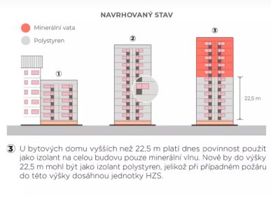 - připustit možnost zateplit i vysoké budovy až do výšky 22,5 metrů jiným izolantem než minerální vlnou (viz obr. 3).