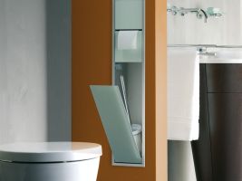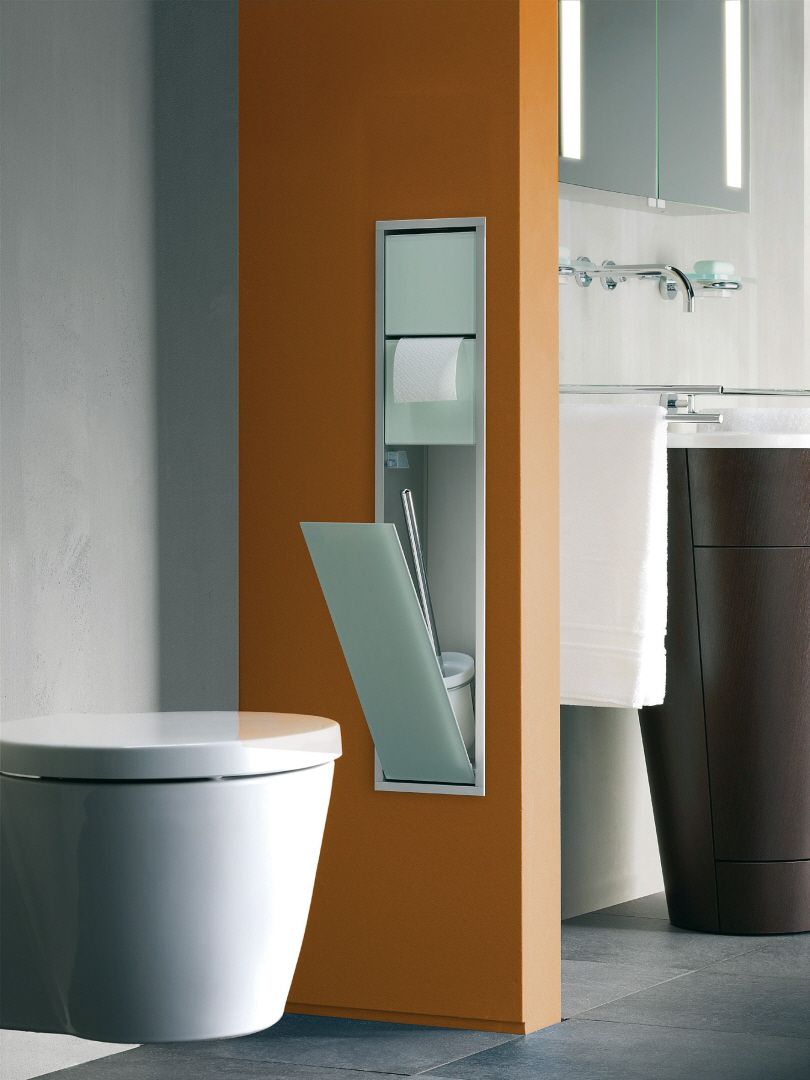 Do těchto skříněk můžete schovat jak běžné věci, jako mýdla, mycí prostředky a ručníky, tak i toaletní papír či štětku na záchod. Zapuštěné modely se totiž stále častěji využívají jako doplňková skříňka u toalety. Jedná se o velmi hygienické řešení.