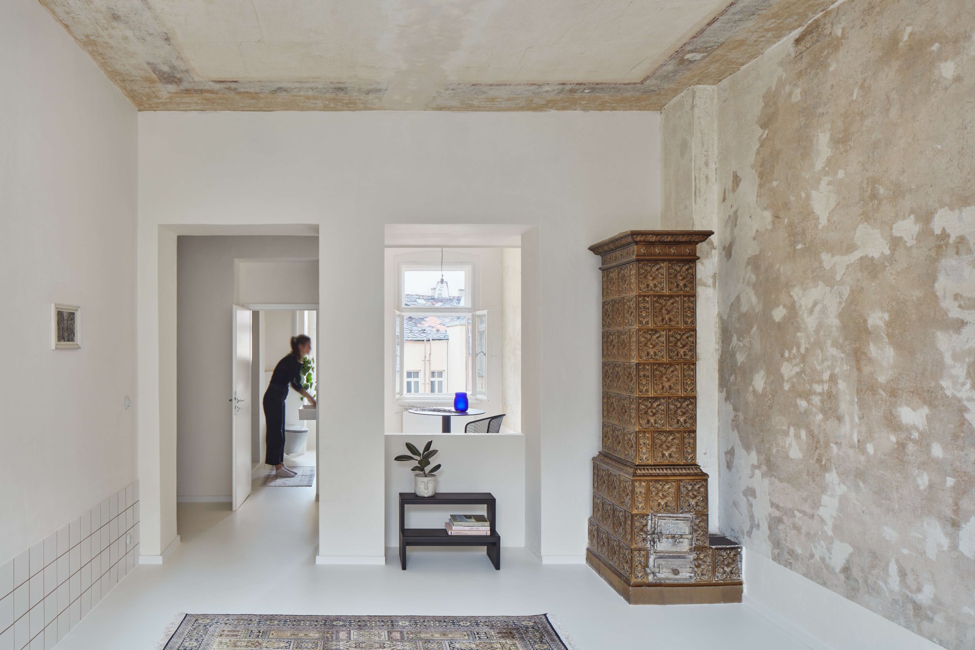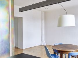 Velmi zajímavý interiér vznikl v činžovním domě z počátku 20. století v Praze na Letné. Cílem majitelů bylo zrekonstruovat a vybavit byt pro rodinu s dětmi. Výsledkem je stylový prostor s množstvím původních prvků, které dodávají místu harmonickou atmosféru. V každé místnosti nechali architekti z atelieru BYRÓ odhalené původní omítky a zajímavý je také kuchyňský kout, který díky barevnému pojetí interiér rozzářil.