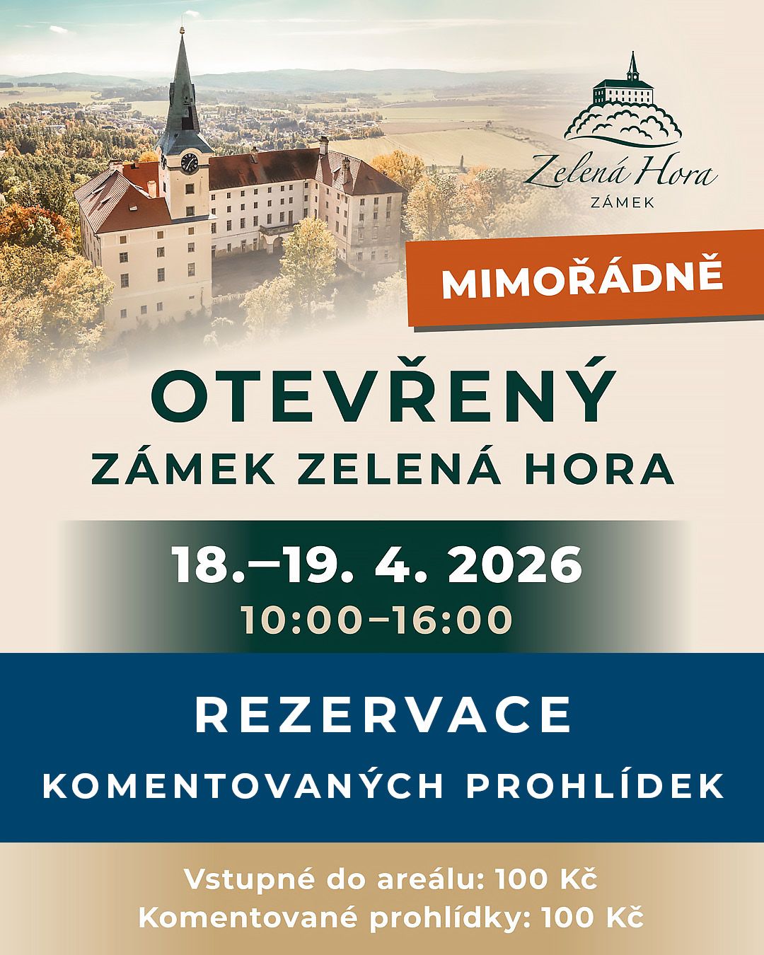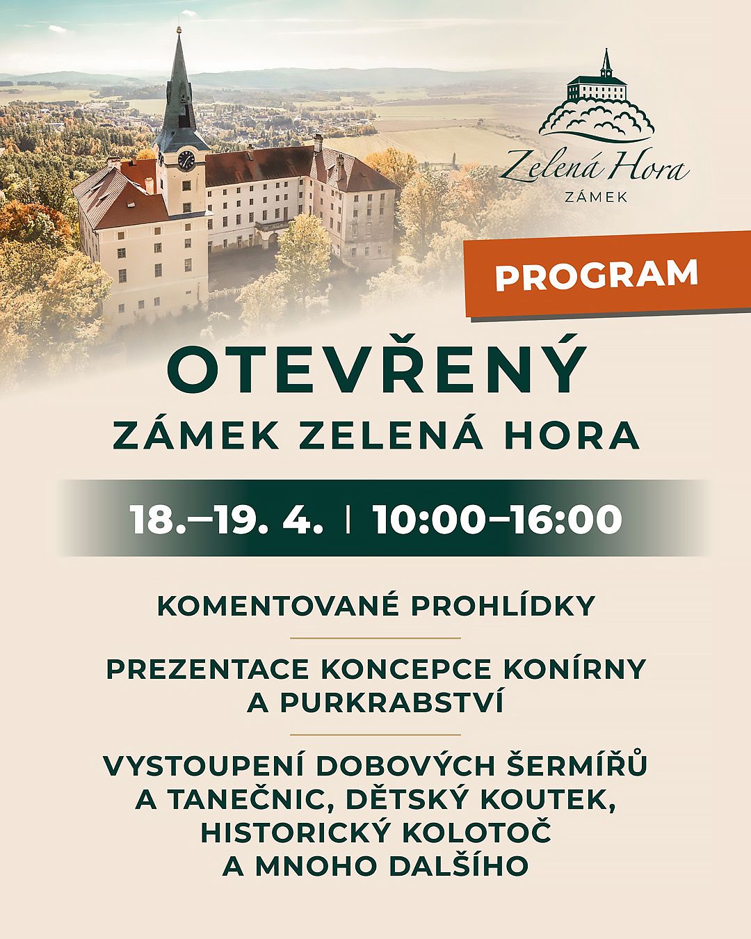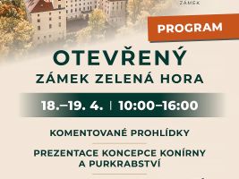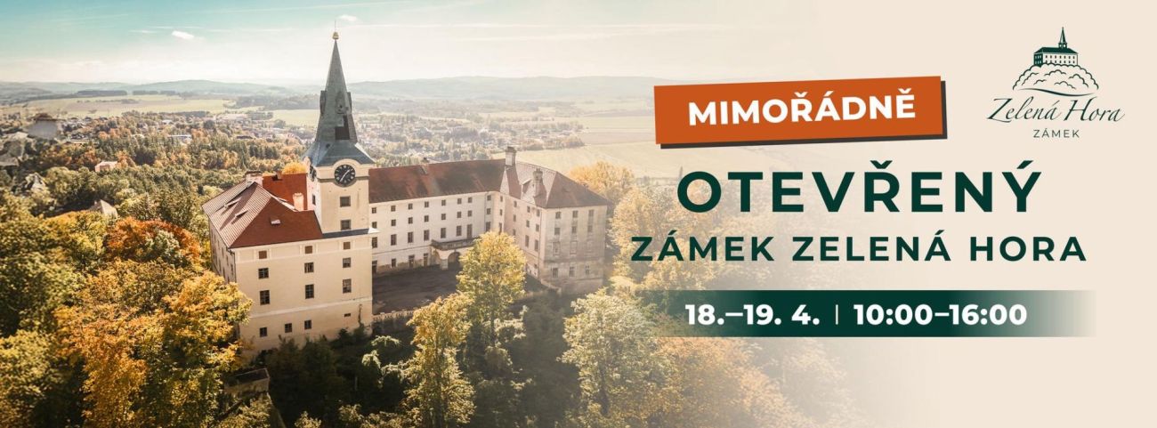Zámek Zelená Hora se o víkendu 18. a 19. dubna 2026 mimořádně otevře veřejnosti. Návštěvníky čekají komentované prohlídky, doprovodný program i představení budoucích plánů areálu. Na komentované prohlídky je nutná rezervace předem ZDE.