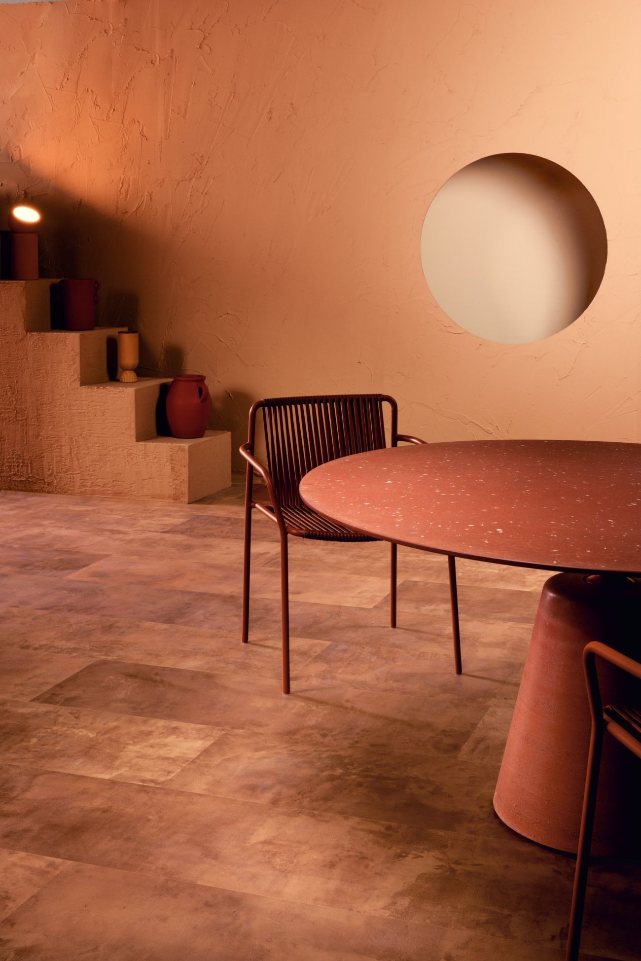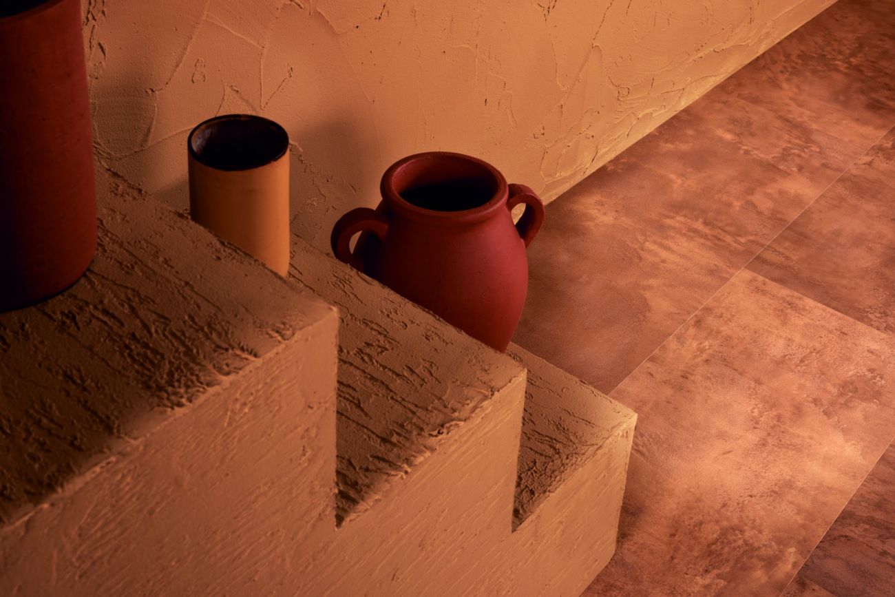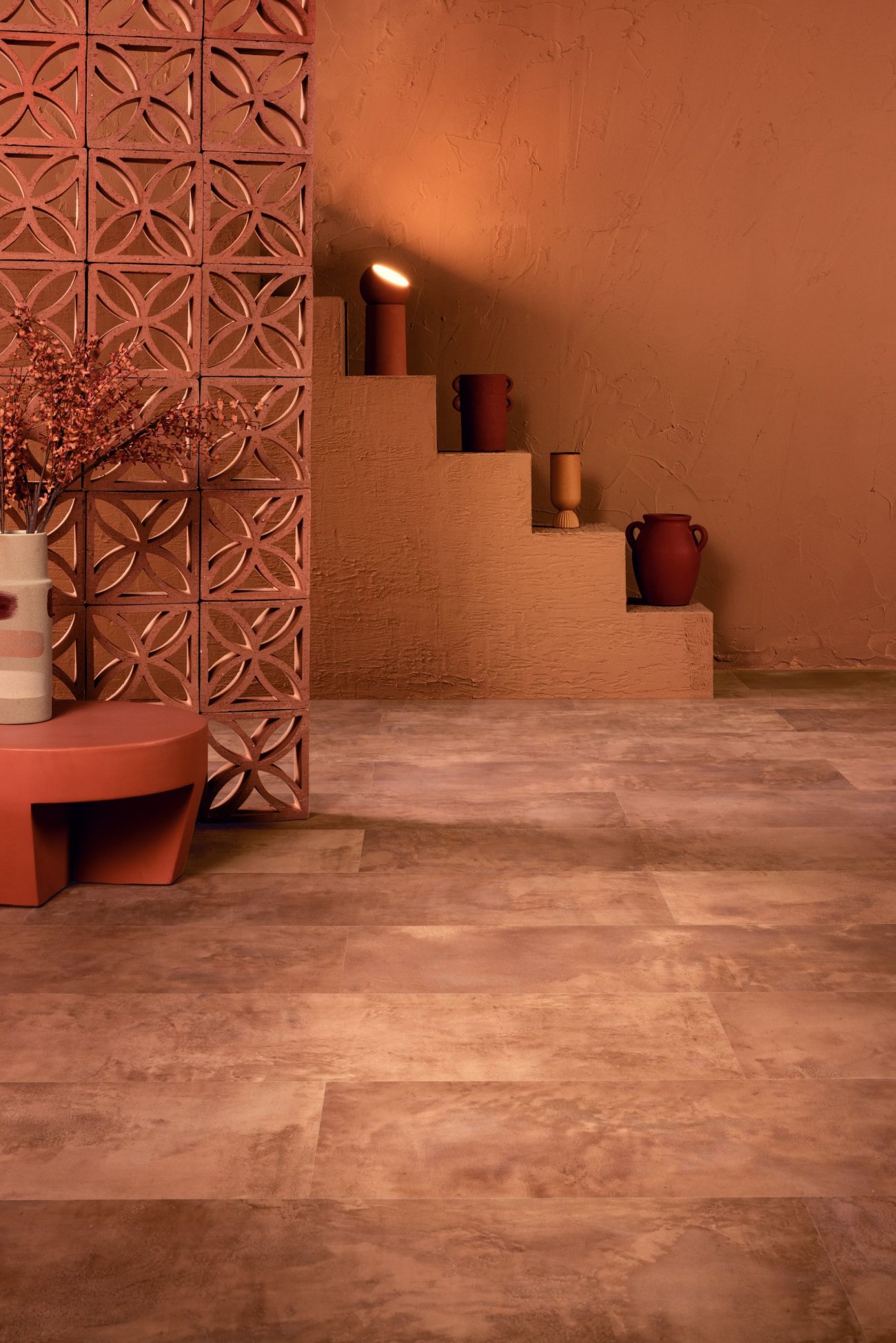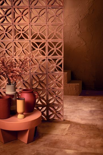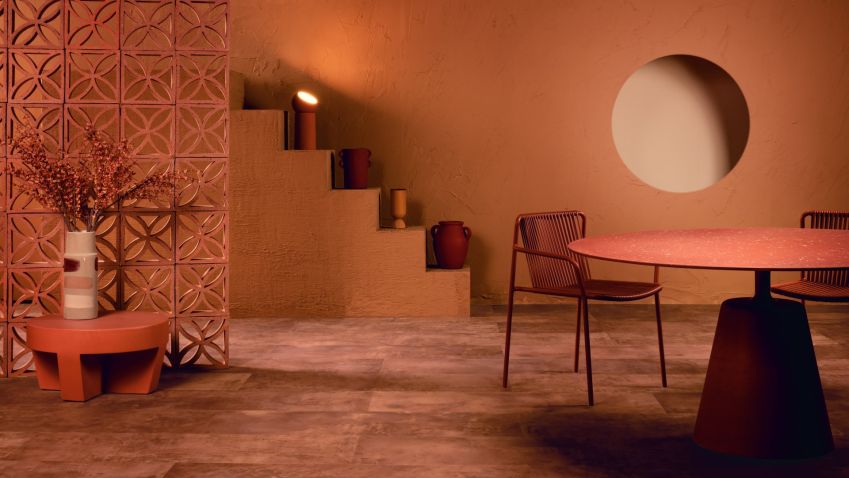 Terakota v sobě nese barevné tóny pomeranče, rzi nebo měkké hlíny a hodí se nejen do moderních, ale i rustikálních interiérů. Pokud chcete docílit decentního retro dojmu, kombinujte ji s tmavě zelenou, hořčičnou žlutou nebo s modrou barvou.
