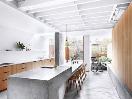 Industriální interiér nabízí velký otevřený prostor inspirovaný výrobní halou