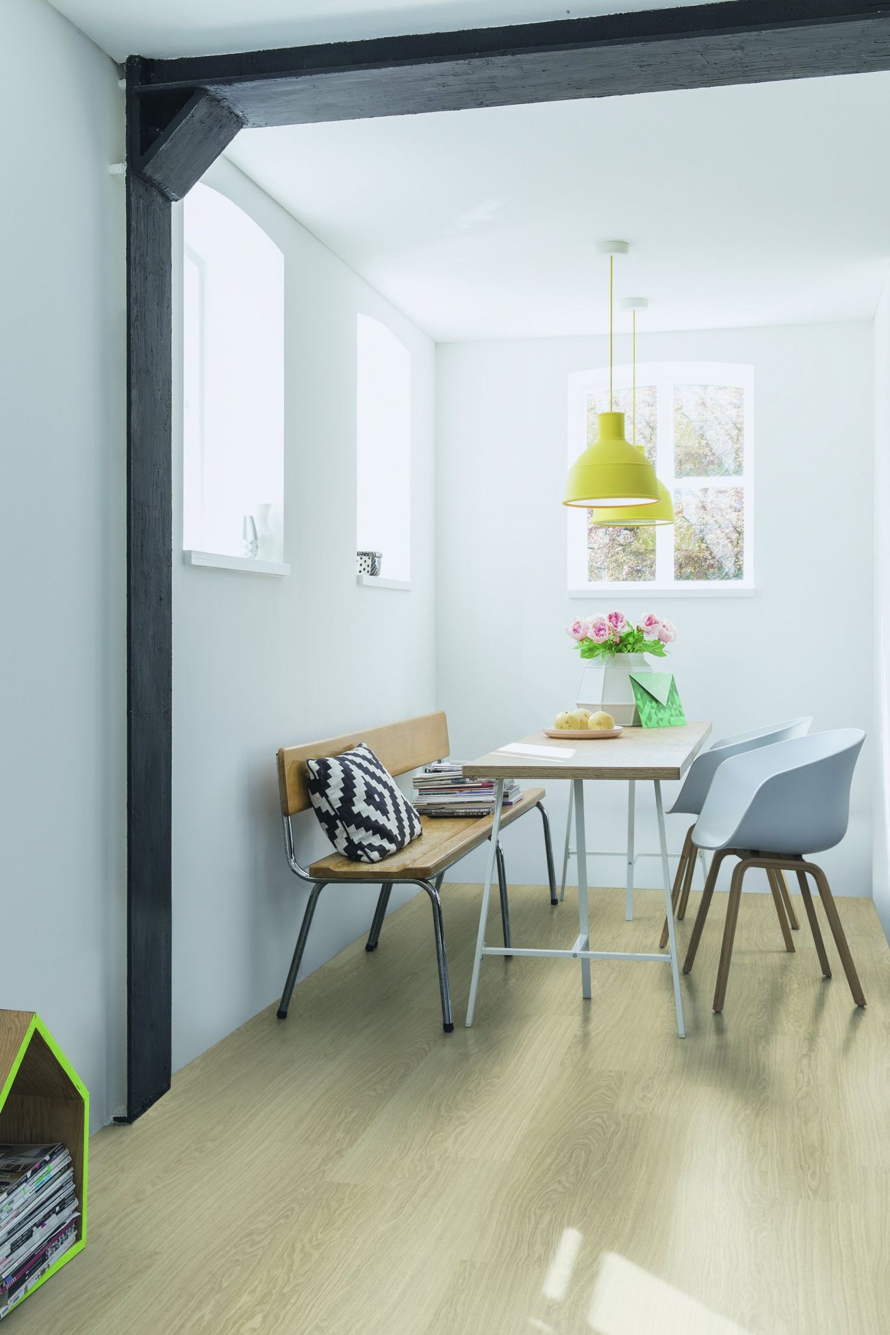 Při novém návrhu malé místnosti nebo úzké chodby je vždy dobrý nápad začít podlahou, protože ta má zásadní vliv má konečný výsledek. Vše závisí na vhodně zvolených podlahových deskách. Pro úzký prostor je vždy lepší zvolit světlou či rovnou bílou podlahu, aby se dosáhlo iluze širšího prostoru. Například společnost Quick-Step nabízí skvělou škálu laminátových a vinylových podlahových desek, které se budou hodit do vaší malé místnosti.