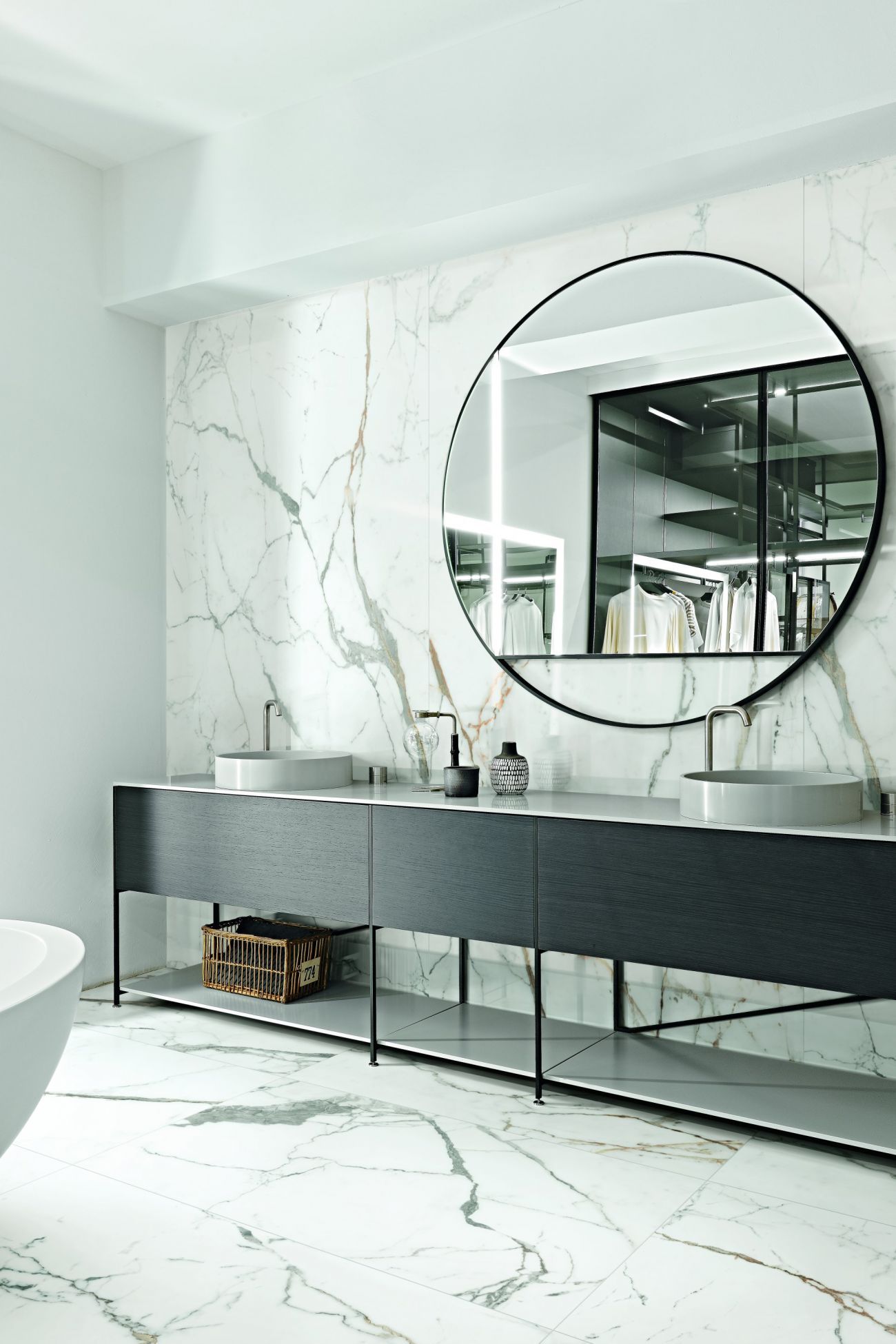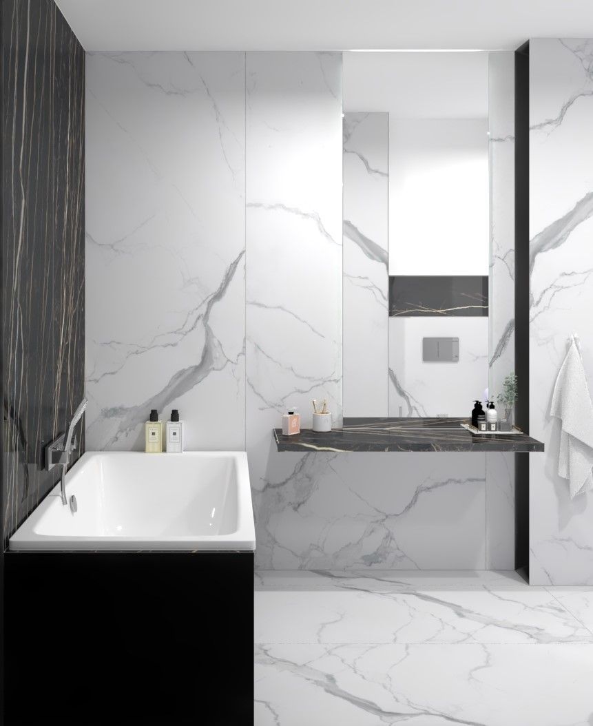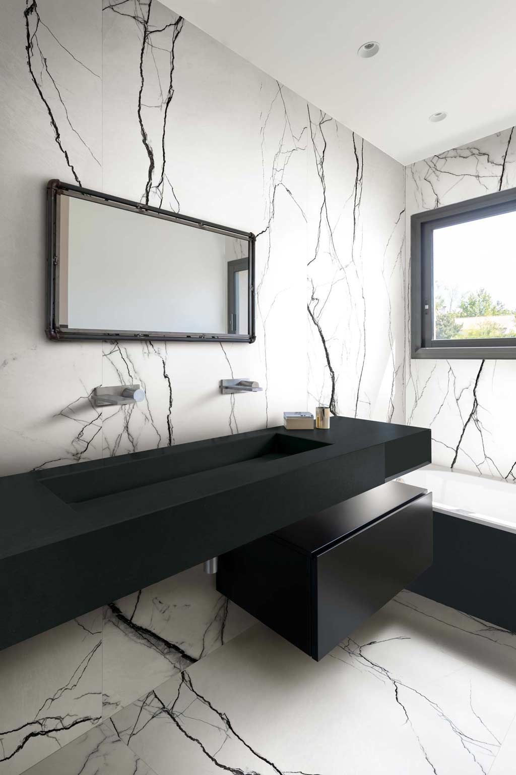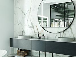 Zatímco dříve jsme za velkoformátové dlaždice považovali například rozměr 30x60 cm, dnešní trend mluví už o zcela jiných rozměrech, a to například až 320x160 cm. Koupelna pak ještě více působí čistým a celistvým dojmem. O tom svědčí i strategie výrobců, kteří stále své formáty zdokonalují a zvětšují. V takto zařízených koupelnách je ale lepší nepřeplňovat prostor nábytkem, důležité je, aby si prostor zachoval vzdušnost a materiál lépe vyniknul.