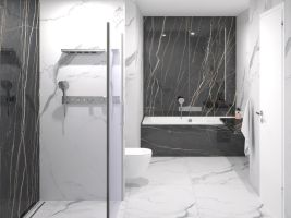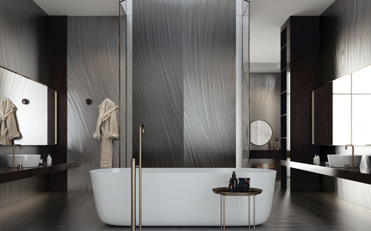 Dlaždice s délkou více jak tři metry můžeme využít především v prostorných rodinných vilách, použít je ale můžeme i v paneláku. Pokud zařizujete menší koupelnu, velký formát dokáže koupelnu opticky zvětšit.