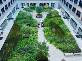 Ploché střechy budov by v budoucnu mohly sloužit k akumulaci dešťové vody a jako zelené oázy měst.