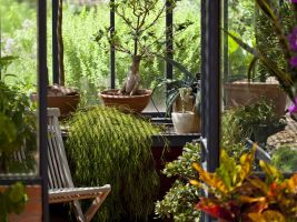 Při vysazování květin a dřevin je třeba zvážit podobné faktory jako při výběru nábytku. Každý rostlinný druh má jiné nároky na prostor, vlhkost, teplotu a množství slunečních paprsků, aby dobře prosperoval. Pro nevytápěnou verzi zimní zahrady je nejlepší zvolit původem subtropické rostliny, které jsou zvyklé na horké léto, ale v zimě jim stačí jen několik stupňů nad nulou. Mezi tento typ patří většina druhů citrusů, fíkovníků a oleandrů. V takovém prostředí můžeme také zazimovat rostliny, které by za normálních okolností nepřežily zimu venku, jako fuchsie nebo muškáty. Naopak ve vytápěné zahradě, kde se celoročně udržuje teplota vyšší než patnáct stupňů Celsia, si můžeme dovolit i náročnější teplomilné rostliny. Kromě oblíbených orchidejí či bromélií se zde bude dařit také tropickému ovoci – banánovníku, datlovníku či kávovníku.