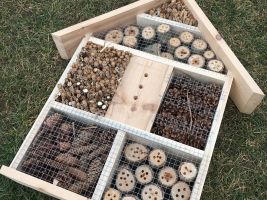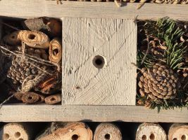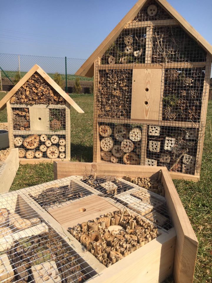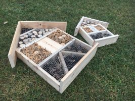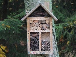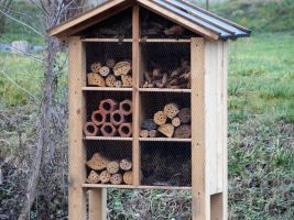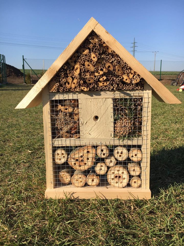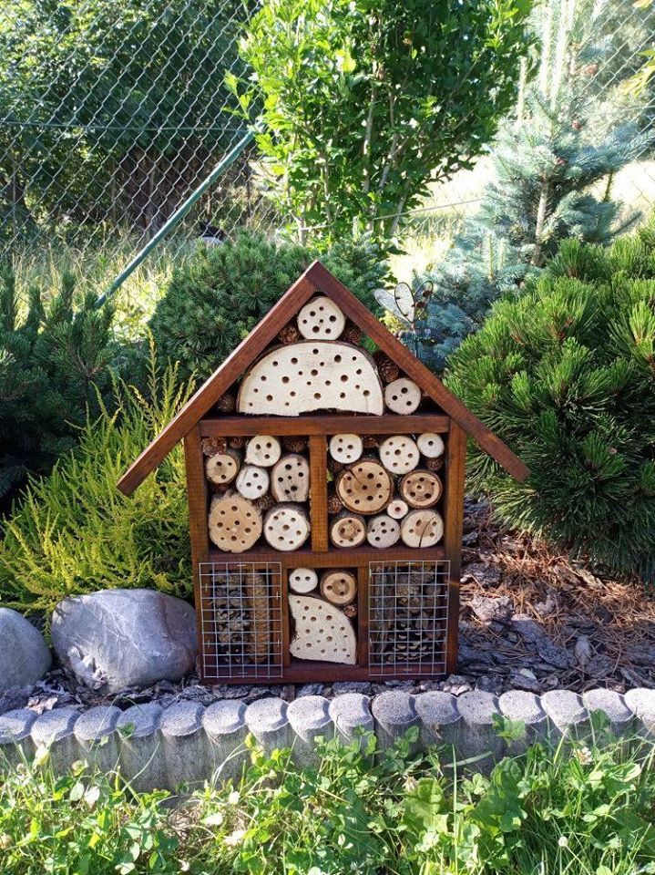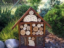 Vhodné je pořídit si hmyzí ubytovny. Ty většinou vypadají jako malé stylové domečky, designů je ale mnoho a seženete už i modernější provedení. Důležité je, aby obydlí bylo vyrobeno z různorodých materiálů. Součástí má být rákos, bezové větvičky, kůra a polínka. Do pořízeného domečků můžete dát ale i kusy cihel či kamenů, mech, šišky a klacíky. Dutinky by měly být dostatečně hluboké, aby poskytly prostor pro přezimování. Takový hmyzí hotel krásně ozdobí například skalku, či nevýrazný kout zahrady.
