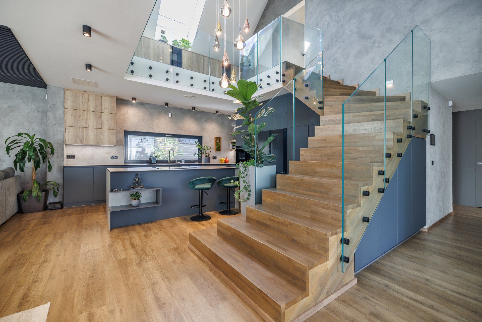 Dřevostavba s galerií a otevřeným stropem nabízí vzdušný prostor pro život