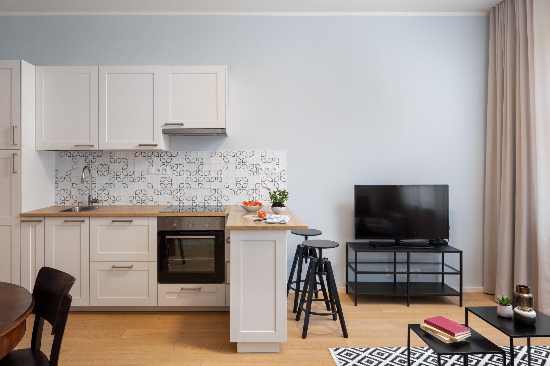 Dominantou holešovického bytu se stala kuchyň se zalitými kameny!