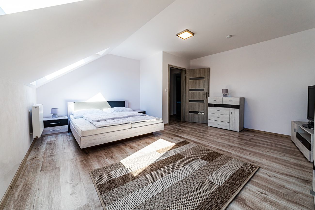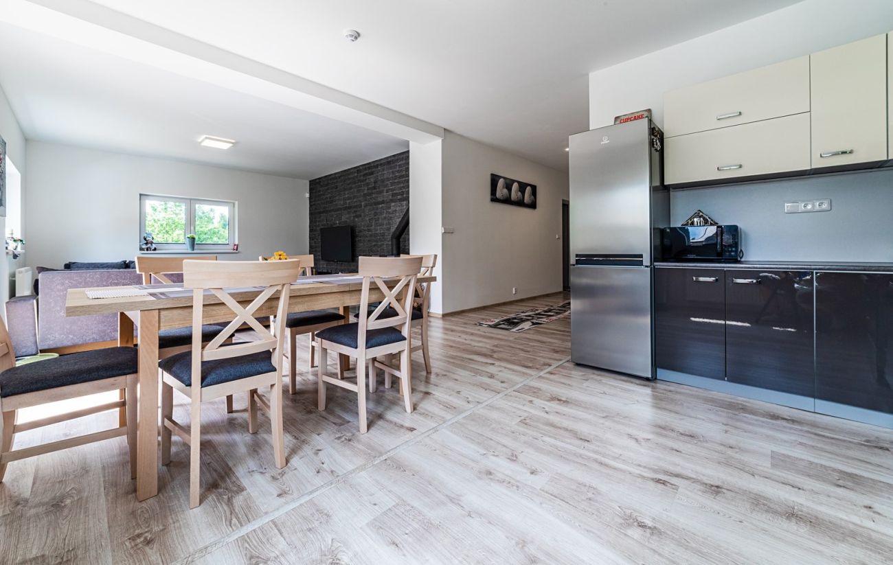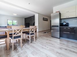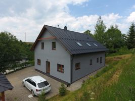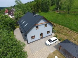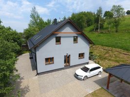 Bytová jednotka v přízemí má dispozice 3+kk o výměře 85 m2 a bytová jednotka v patře má dispozice 4+kk o výměře 100 m2. Dům je novostavba s energetickou náročností třídy B. Je napojený na městský vodovod a má vlastní jímku. Vytápění je formou elektrokotlů a voda se ohřívá v elektrických bojlerech. K domu přísluší zahrada a parkovací stání pro 4 auta. K dispozici je i prostorná lyžárna či kolárna. Samozřejmostí je ovládání systému vytápění a systému zabezpečení na dálku z vašeho telefonu či tabletu.