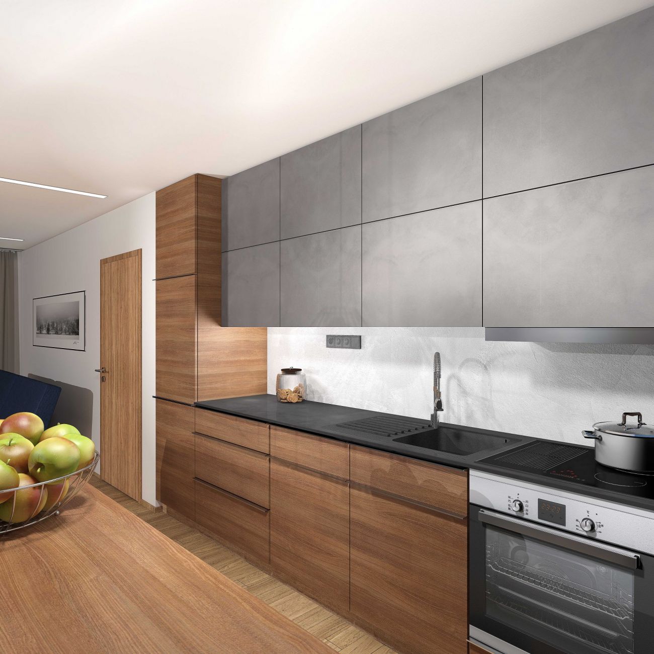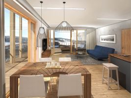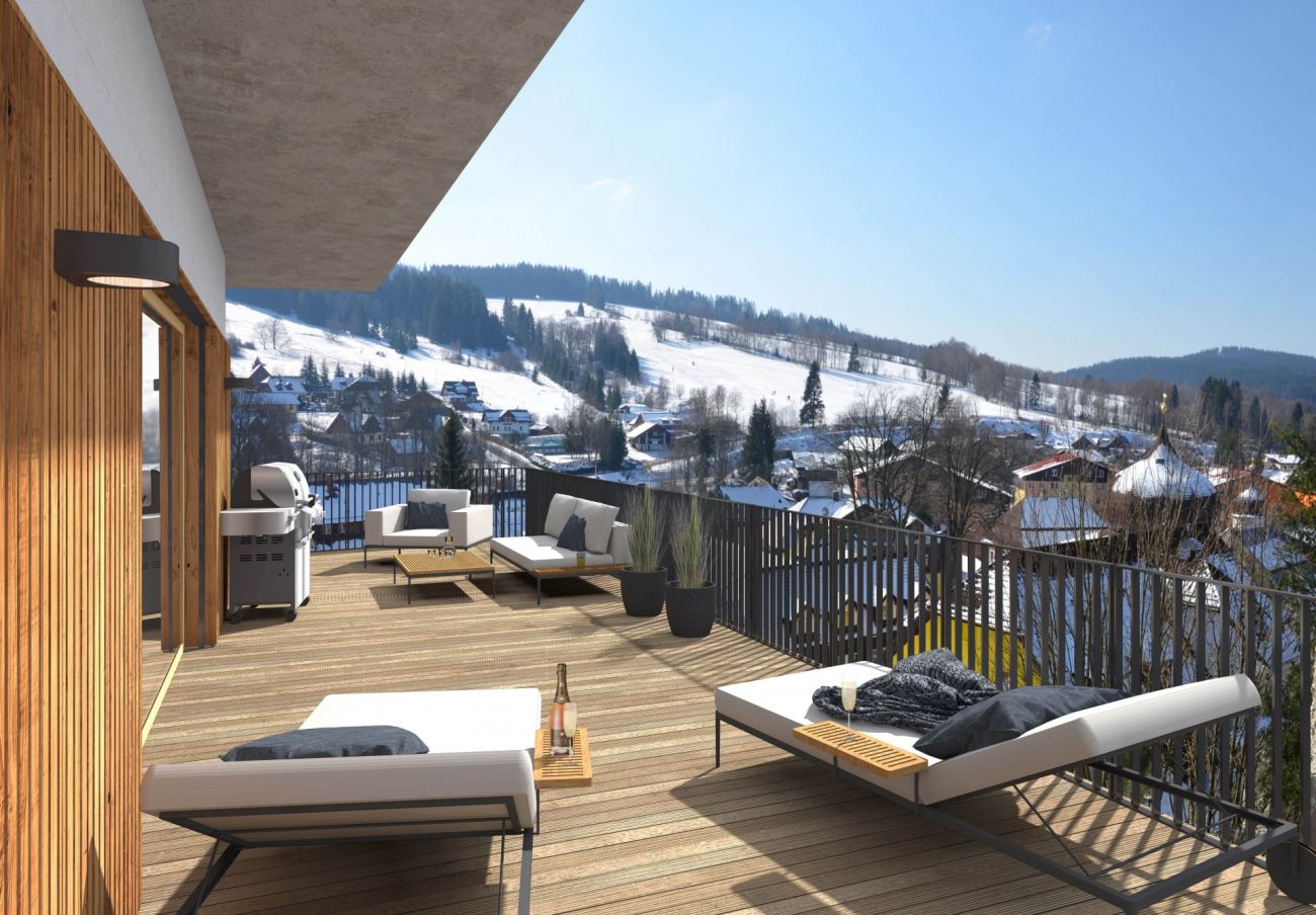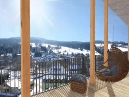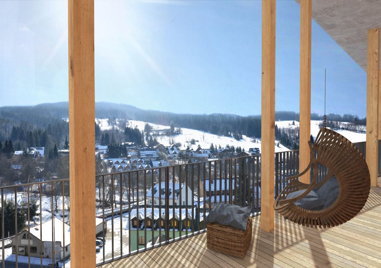 Ačkoliv investor mohl ponechat původní schválenou studii, která nepočítala s komerčními prostory ani podzemním parkováním, jeho úmysl byl zcela opačný - proměnit nevzhlednou budovu v architektonicky výjimečnou stavbu, která se objevuje spíše ve slavných alpských střediscích. Nový návrh, který tvoří dvě samostatné věže, zajistí podstatně lepší výhled a oslunění okolních domů. Nabízené byty mají nadstandardní vybavení včetně sklepních kójí a jižně orientovaných teras. Skiareál Belveder je čtyři minuty od projektu a za návštěvu stojí i nově vybudované environmentální centrum Železné Rudy, které je zdarma.