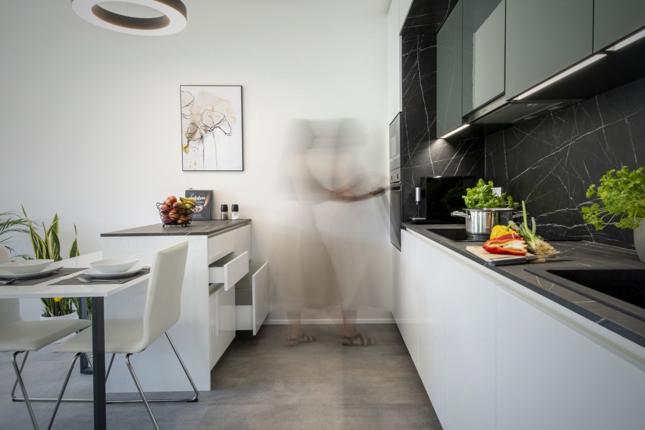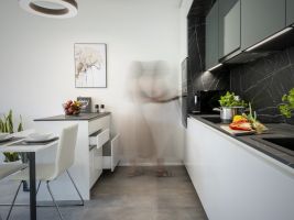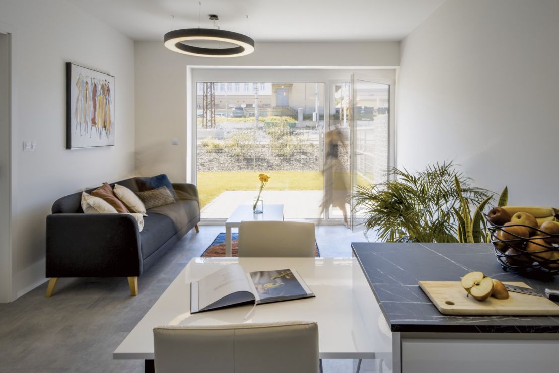 Stavba je realizována z cihel, což zajišťuje dlouhou životnost, kvalitní tepelnou izolaci a především akustický komfort – sousedy tu neuslyšíte. Velkým benefitem je možnost přizpůsobit si byt podle vlastního vkusu. Díky online konfigurátoru si zájemci mohou vybrat například podlahy, obklady i další materiály. V bytech je navíc už v základu připravena instalace pro klimatizaci a venkovní žaluzie. Samozřejmostí je dostatek parkovacích míst – jak venkovních, tak podzemních – a praktické sklepy přímo v domě.