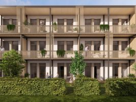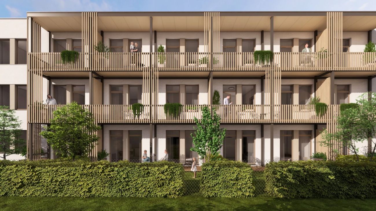 Součástí bytů budou prostorné balkony s modřínovým obkladem, případně předzahrádky, které rozšiřují obytný prostor a propojují interiér s přírodou.