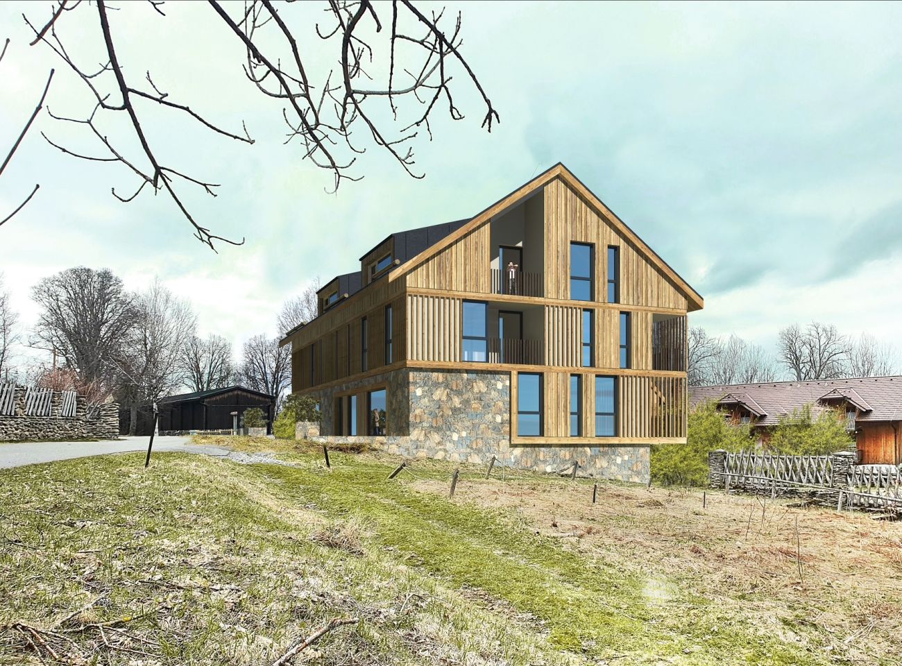 K mání jsou byty od 1+kk až po 3+kk s autentickým designem. Světlem prostoupené interiéry s otevřenými výhledy do krajiny přesně podtrhují charakter tohoto místa. Součástí apartmánů je i vlastní parkovací stání. Ve standardu je pak krb či finská sauna.