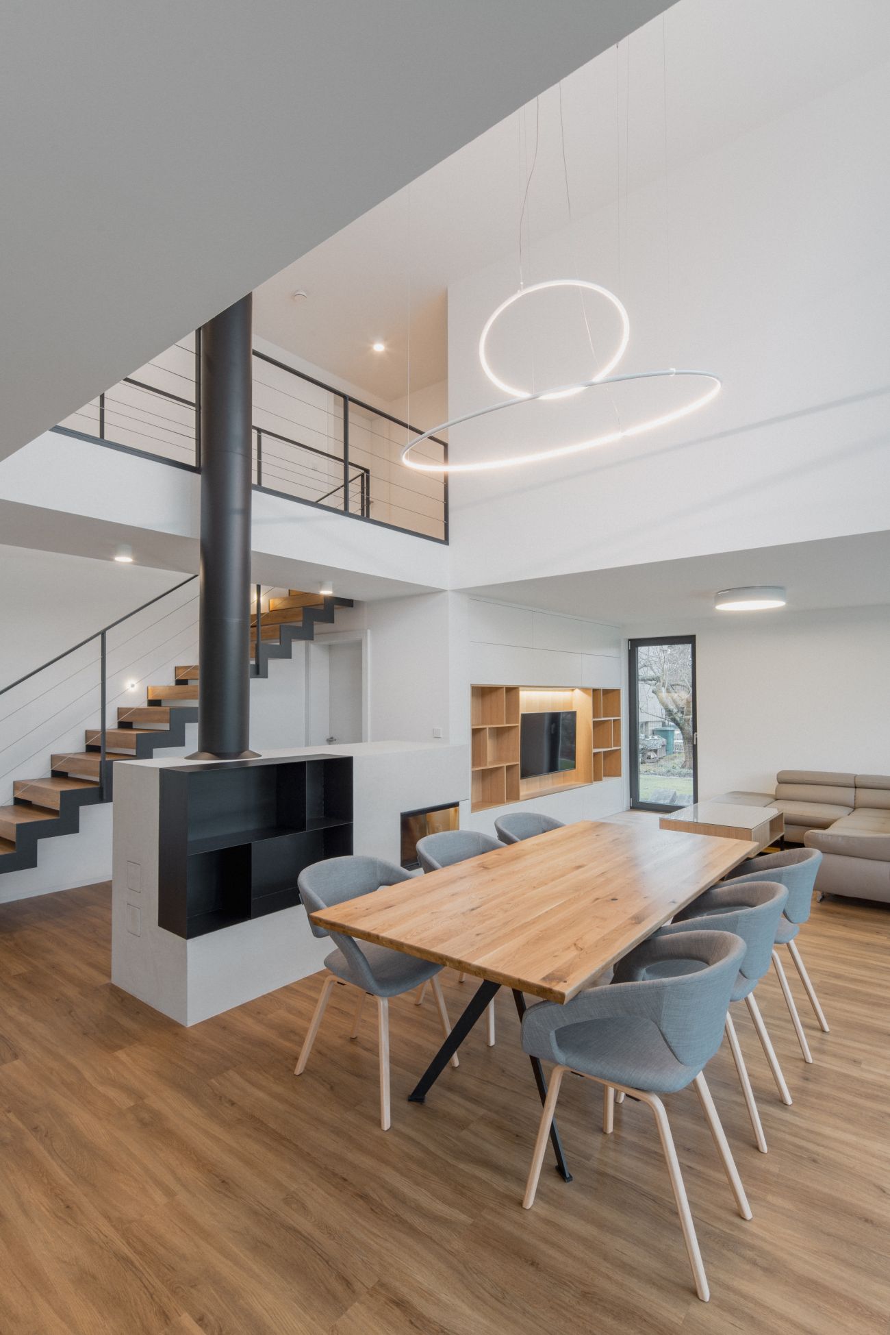 „Před třemi roky nás oslovil klient s tím, že chce na úzkém a dlouhém pozemku realizovat rodinný dům pro svoji čtyřčlennou rodinu,“ vysvětluje Janout, který se snaží do každé stavby vložit osobní příběhy jednotlivých klientů.