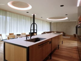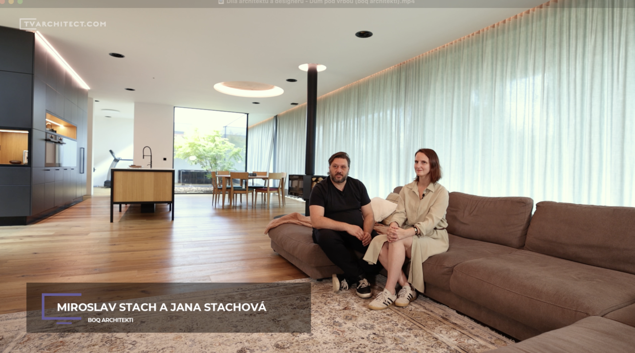 Na svažitém pozemku kousek od rybníka vznikl dům, který pracuje s převýšením terénu i přirozeným světlem. Architekti z boq architekti navrhli stavbu jako otevřený a vzdušný prostor, který spojuje interiér se zahradou a využívá silný potenciál místa. Beton, dřevo a promyšlená práce s objemem tvoří základ tohoto domu.