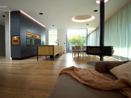 Dům pod vrbou ukazuje, jak může moderní architektura citlivě pracovat s terénem, světlem a materiálem. Přímé propojení s krajinou, surový beton v interiéru a velkorysé zasklení vytvářejí prostor, který přirozeně reaguje na okolí a zároveň nabízí silný estetický zážitek. Výsledkem je dům, který je zakotvený v místě a zároveň otevřený směrem k přírodě.