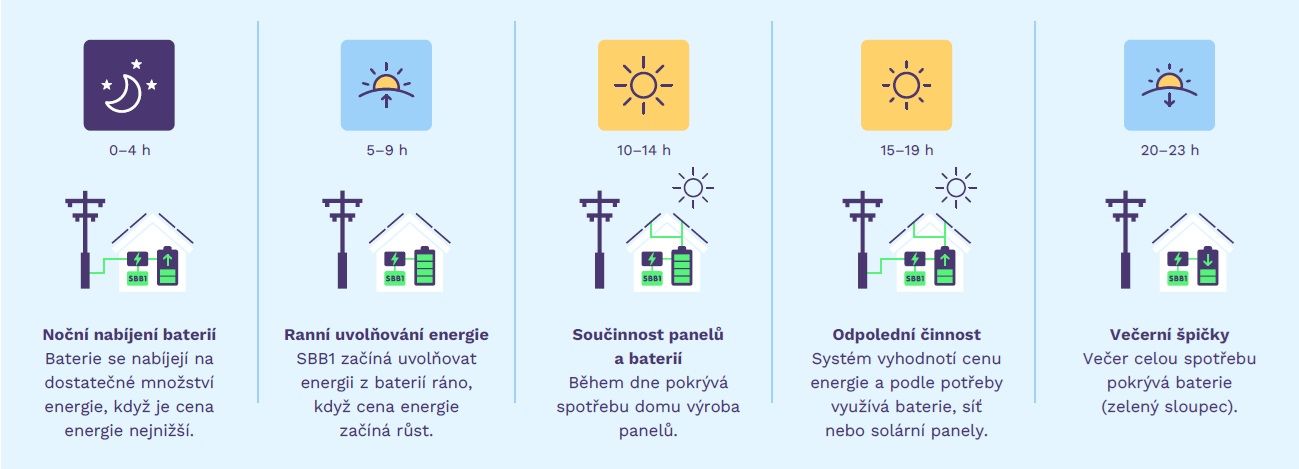 Co to vlastně je a jak to funguje : Smart Battery Box je v podstatě malá, chytrá krabička pro váš domov. Funguje jako taková spořitelna na elektřinu - když je jí hodně nebo je levná, uloží si ji do vašeho bateriového uložiště, a když ji potřebujete, zase vám ji vrátí. V noci, kdy je elektřina obvykle levnější, si "nabije" energii, kterou můžete využít přes den. Pokud máte solární panely, dokáže uložit přebytečnou energii, kterou vyrobí. A co je skvělé, v případě výpadku proudu vám dodá elektřinu, abyste nezůstali ve tmě.
