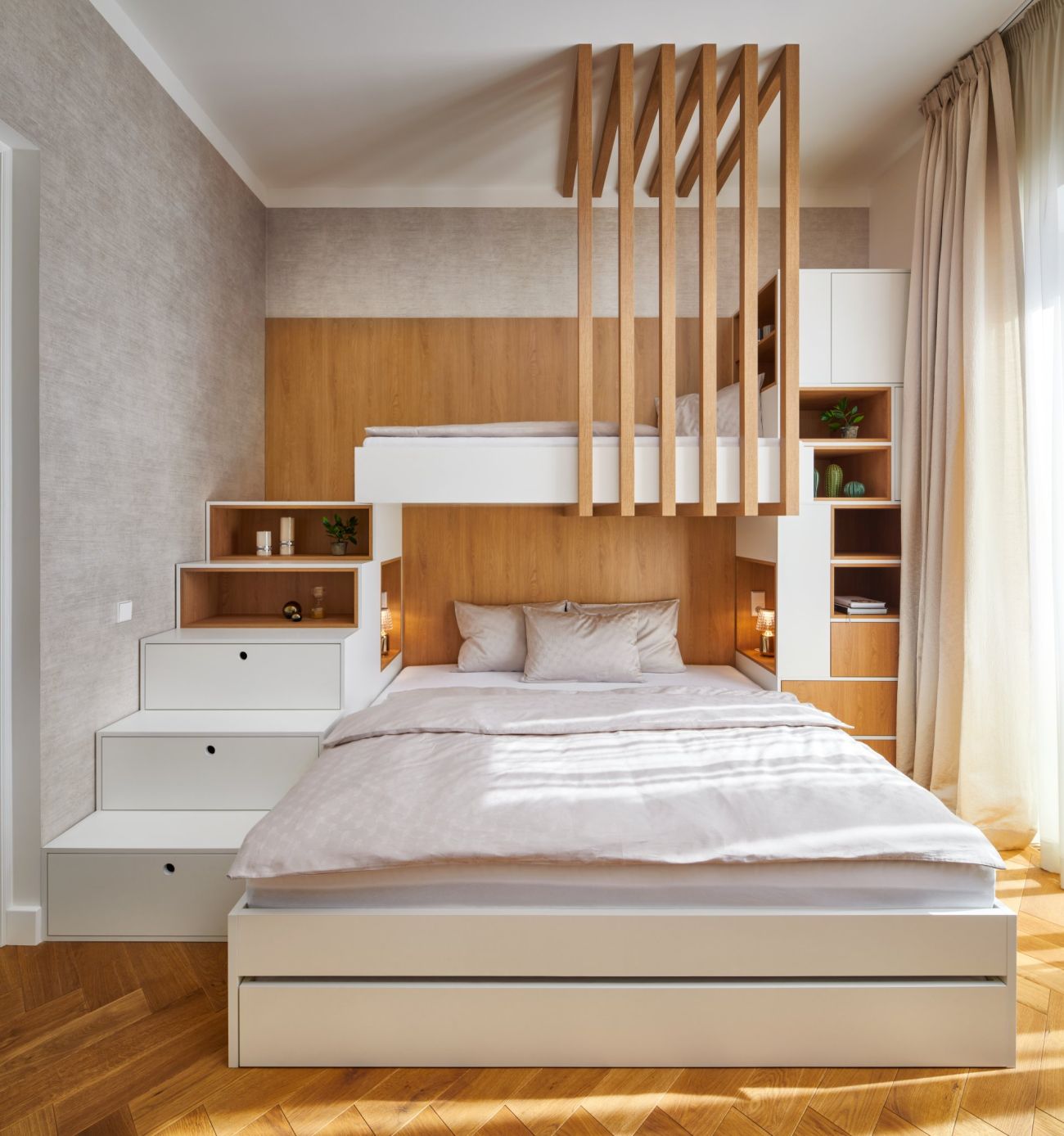 Do ložnice je třeba zvolit postel s úložným prostorem, kam můžete uložit lůžkoviny. Pokud chcete ušetřit ještě více místa, může být řešením i výklopný gauč, který poslouží jako plnohodnotná postel, tady ale zase není místo pro peřiny.