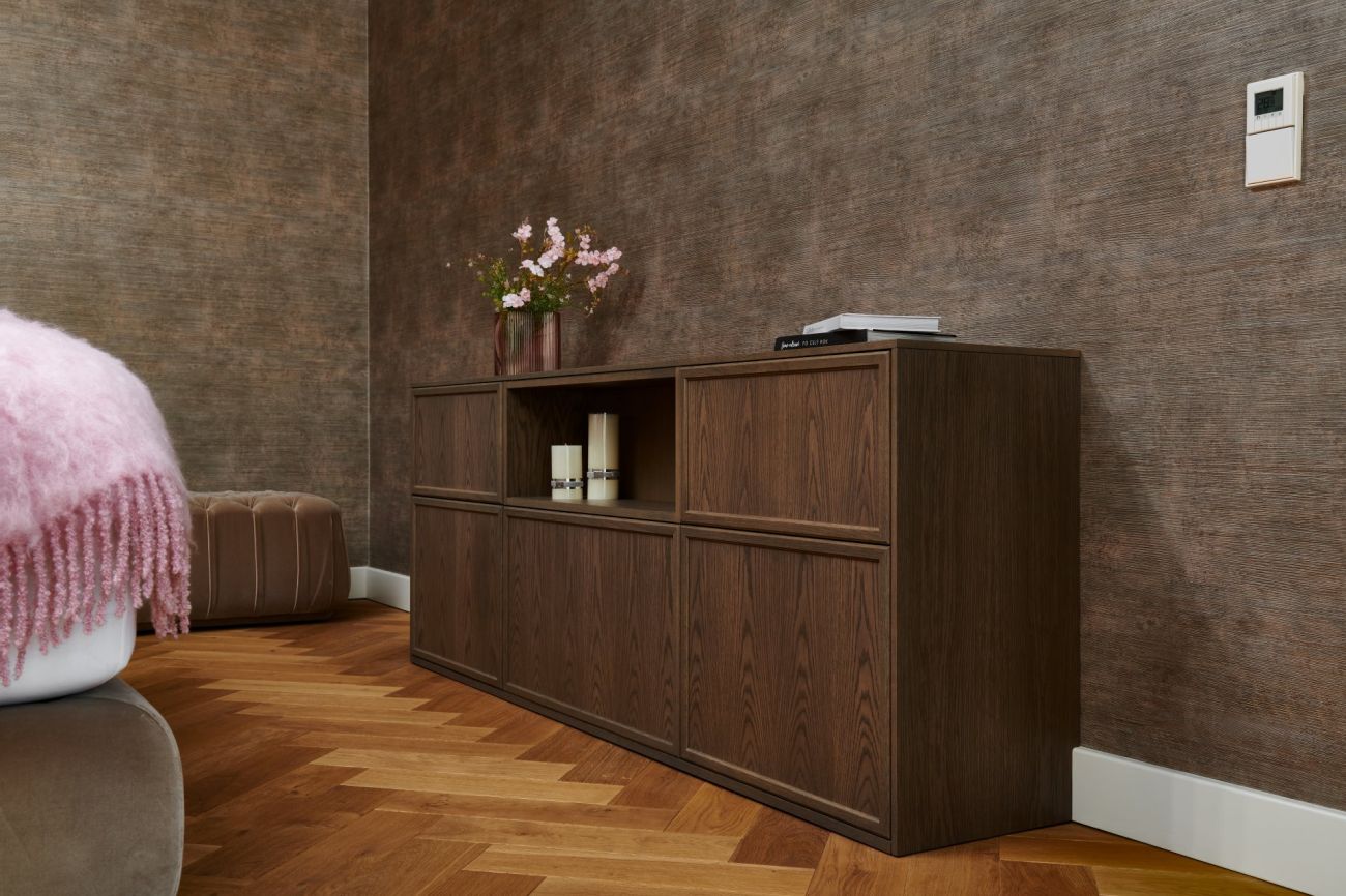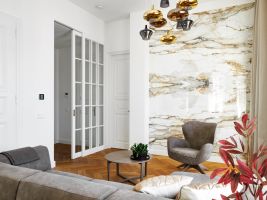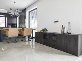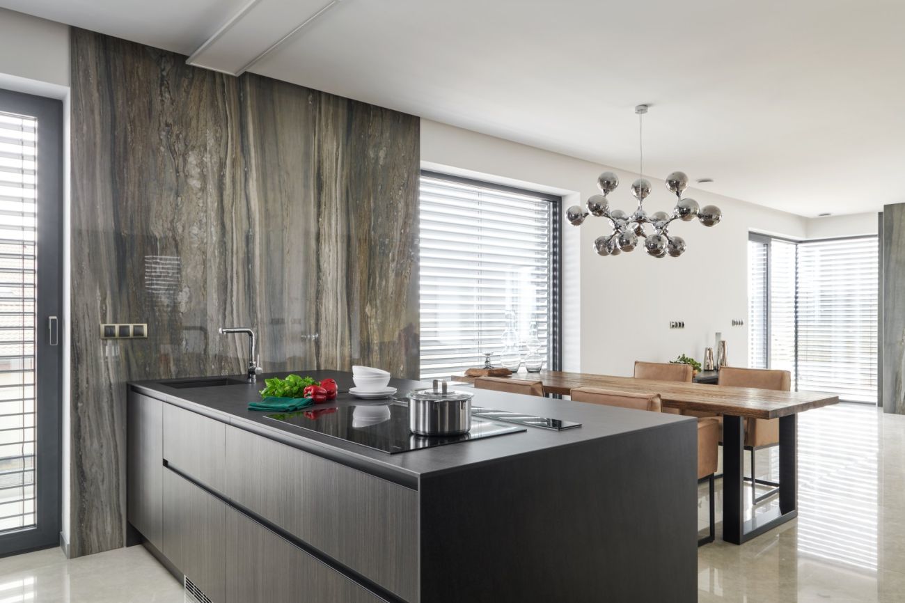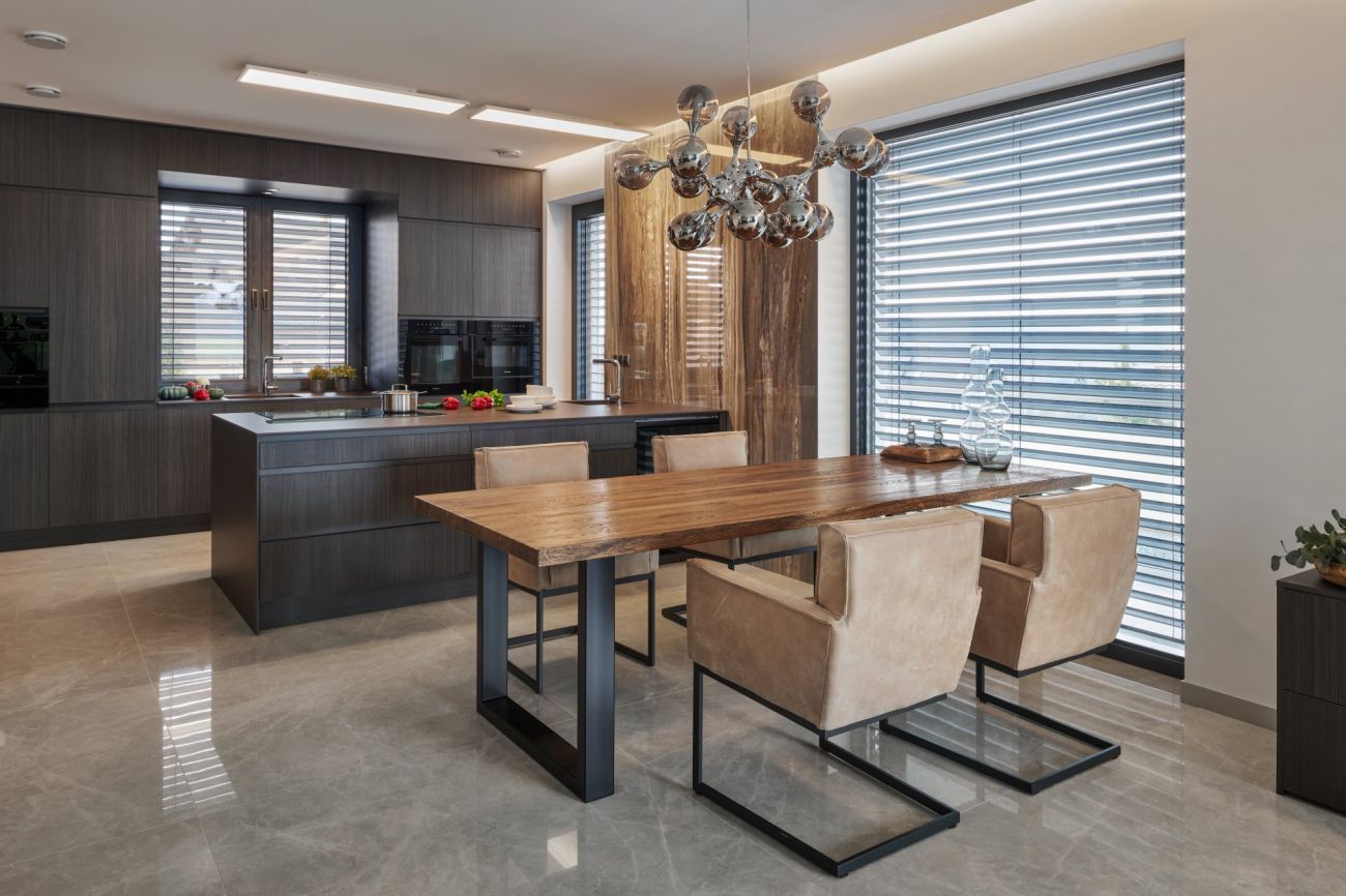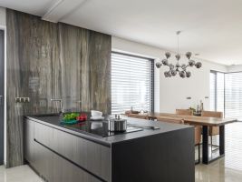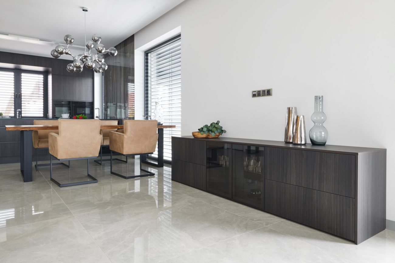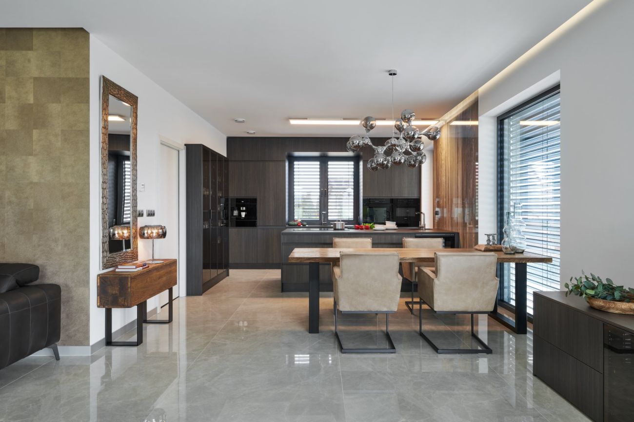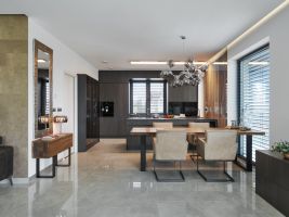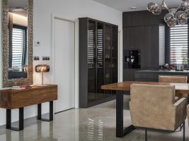 Koncept navrženého interiéru v New Living Center je v provázanosti materiálů, kdy jeden prvek prochází z kuchyně do obývacího pokoje či do ložnice a předsíně. Pokud totiž chcete vše řešit samostatně, nikdy nedostanete tak propojený a efektivní celek.