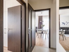 Praktické jsou pro malé byty posuvné dveře či úložné prostory od stěny do stěny. Vždy je potřeba vytěžit z daného prostoru maximum.