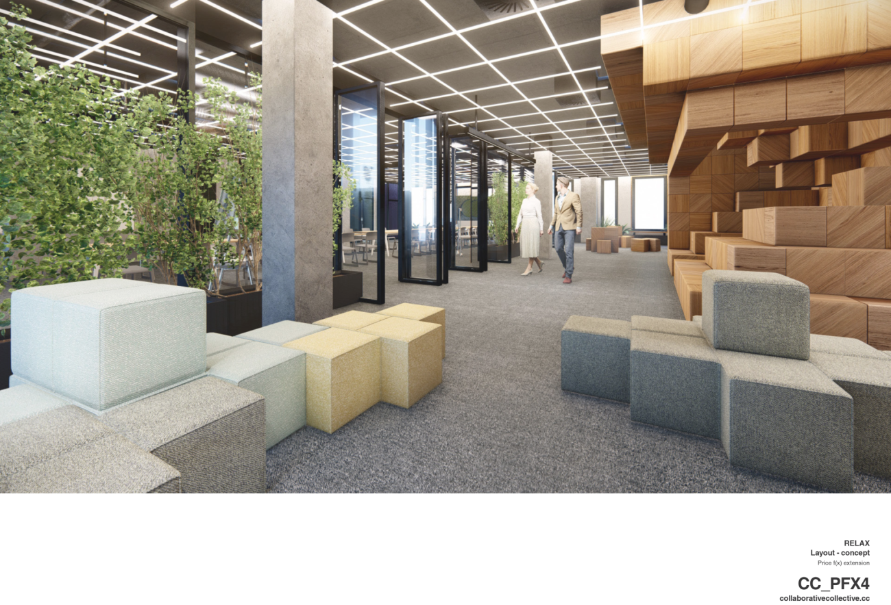 Rekonstrukce těchto kanceláří má za cíl vytvořit moderní koncept kanceláří pro 21. století. V tomto případě vedení společnosti zvolilo industriální styl. „Hlavním vizuálem je černá trubka, z které je udělaný všechen nábytek od židlí a stolu až po gauč. Jedná se o industriální design, který zde byl chtěný. Nechybí zde ani květiny, a to jak v prostoru, tak i v pásu oken,“ říká Libor Mládek, architekt COLL COLL.
