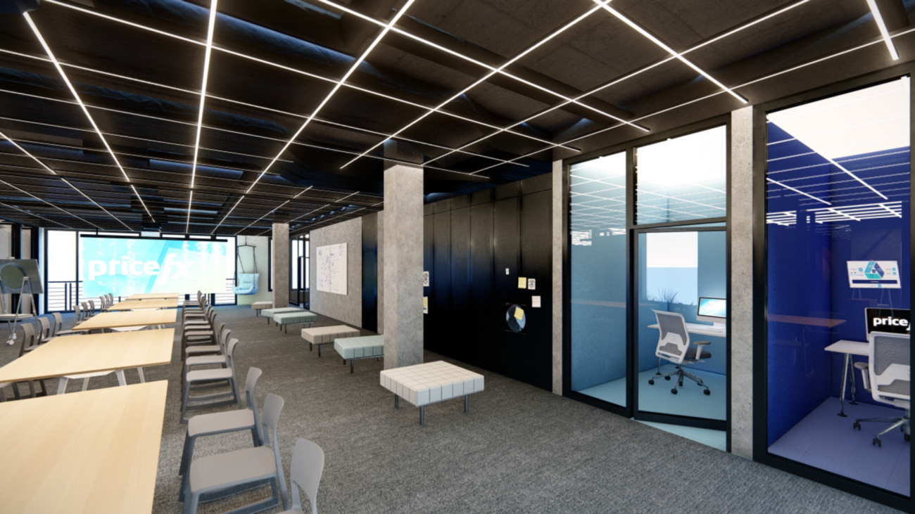 Kanceláře společnosti Pricefx se nacházejí v administrativní budově v pražském Karlíně. Cílem rekonstrukce je vytvořit ve dvou patrech propojený a multifunkční prostor, který bude odpovídat těm nejmodernějším požadavkům na pracovní prostředí. Dominantou a jakýmsi hlavním prvkem je centrální schodiště propojující dvě patra kanceláří, které je navíc doplněné skluzavkou. Tento prvek má za úkol propojit společenské patro s pracovním.
