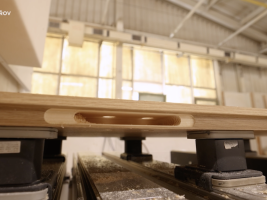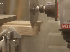 Součástí každých interiérových dveří je samozřejmě i zárubeň. V Rýmařově se vyrábí pomocí moderního CNC zařízení, které v jednom kroku provádí pokosové hrany, drážky pro protiplech a přesné řezy jednotlivých částí.