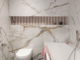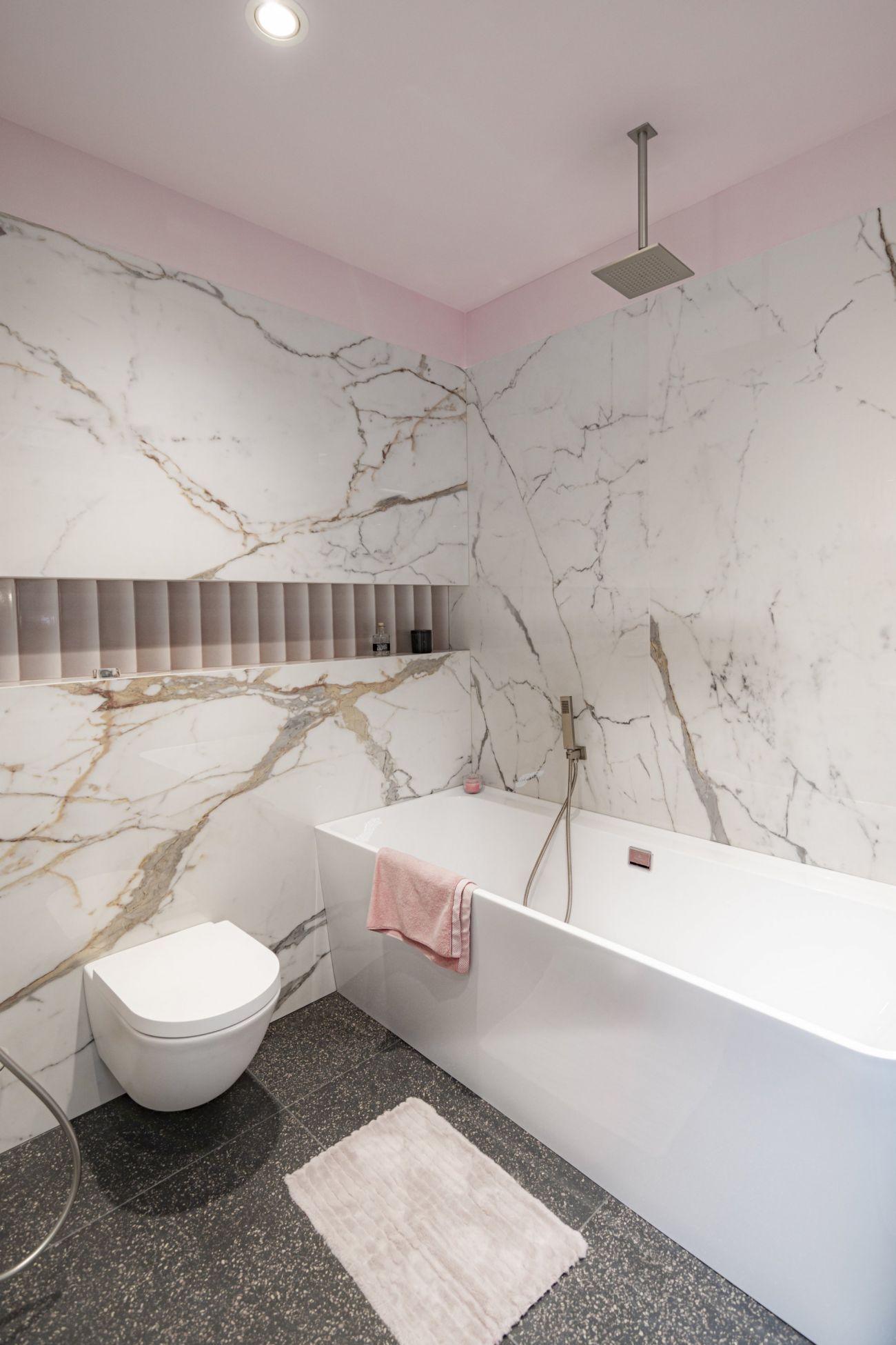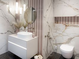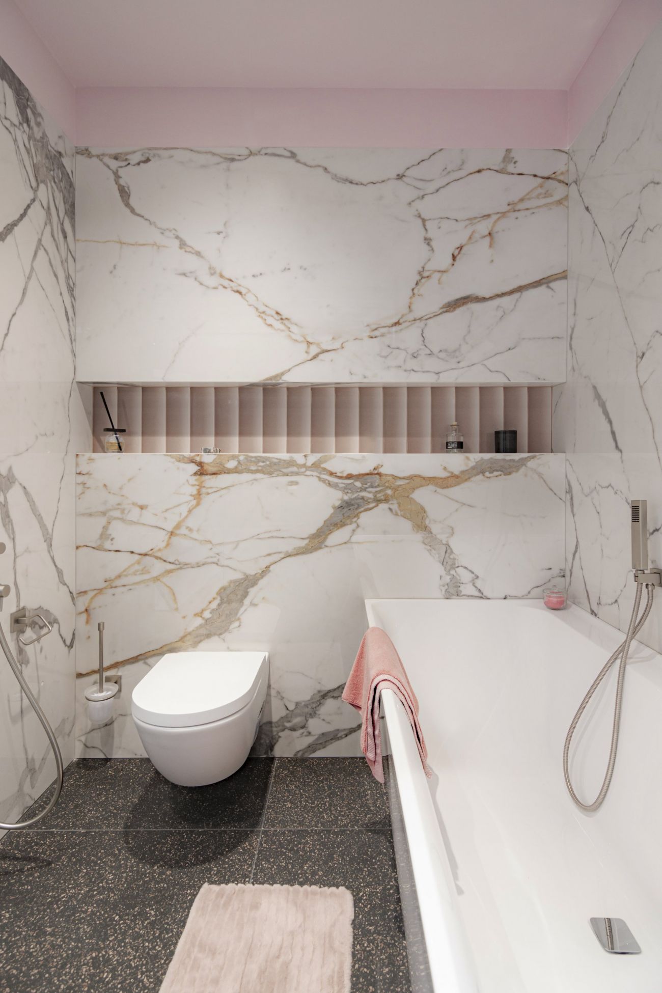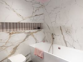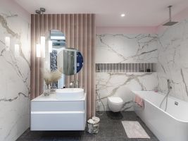 Jemná kombinace imitace mramoru s narůžovělými prvky