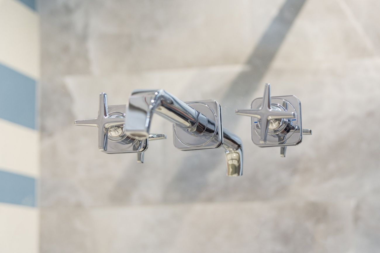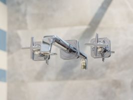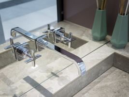 Série Rock Salt má provedení lesk i mat a materiály lze efektivně kombinovat. V naší koupelně je tak vyrobeno například umyvadlo, které má navíc zajímavě zpracovanou odtékající plochu. Vše je doplněno atypickou designovou baterií.
