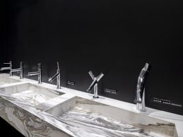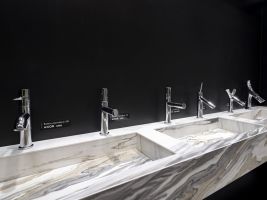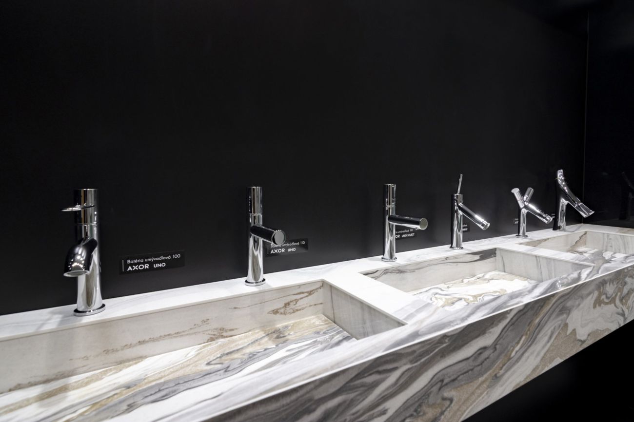Zde můžete vidět plně připojené koupelnové i kuchyňské baterie, ale také sprchové novinky či třeba i elektrické bidetové sedátko a další doplňky.