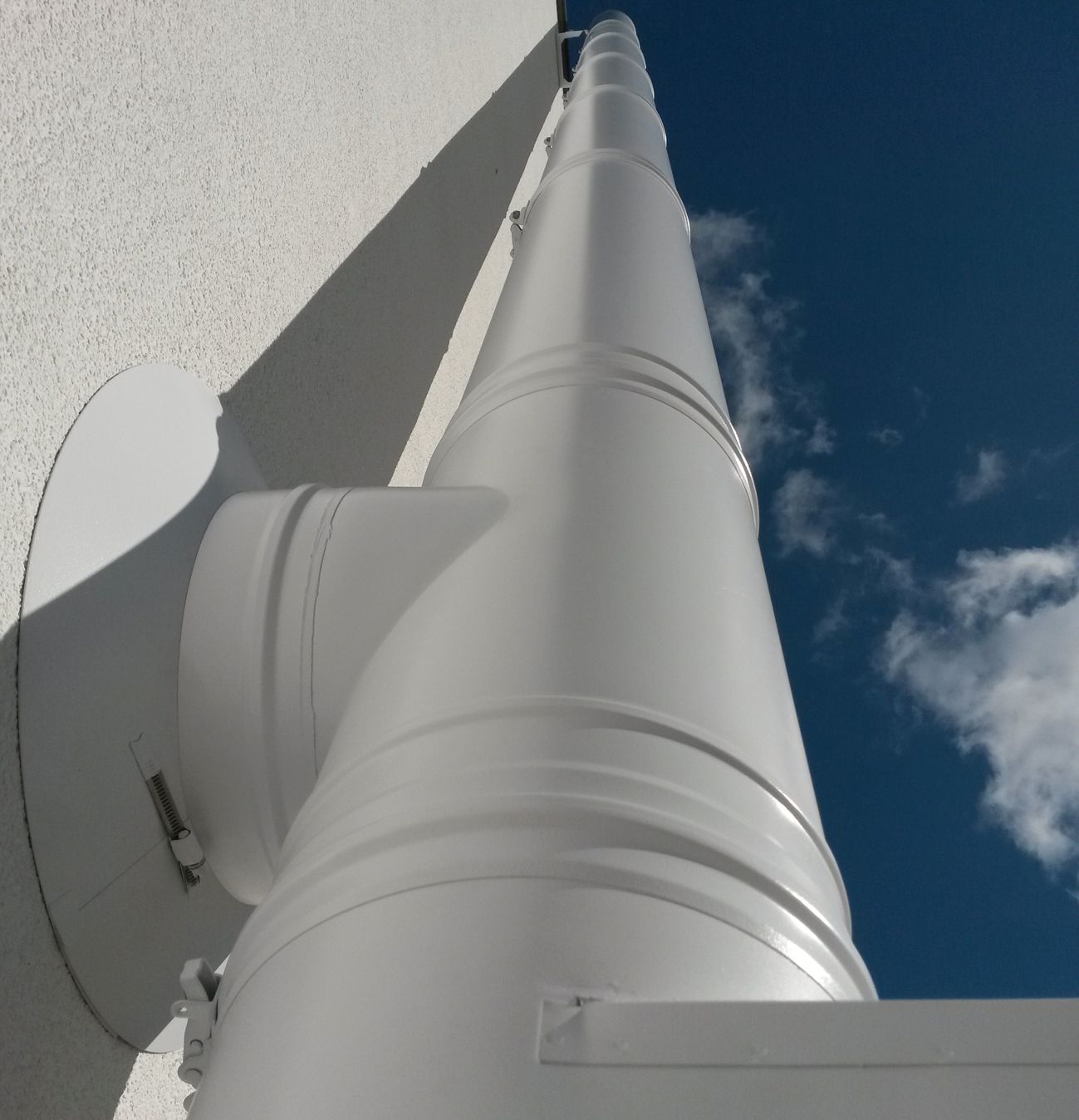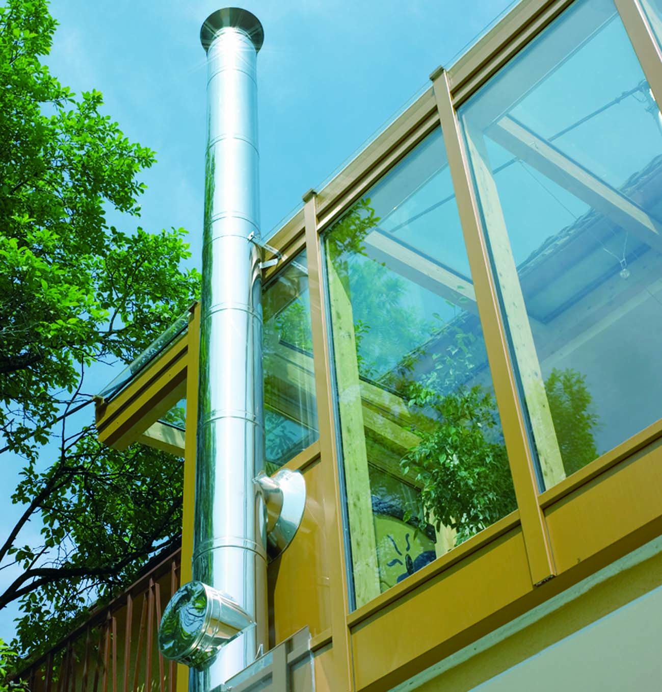 Tento nerezový třívrstvý komínový systém je vhodný pro všechny druhy paliv a většinu typů spotřebičů, navíc v designovém barevném stylu. Hodí se jako dodatečný, či fasádní komín. Má lehkou konstrukci a není nutné pro něj dělat základy. Jeho montáž je velmi rychlá.
