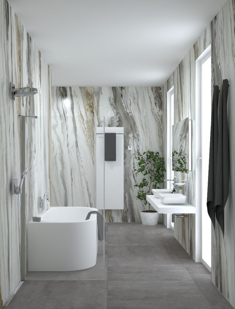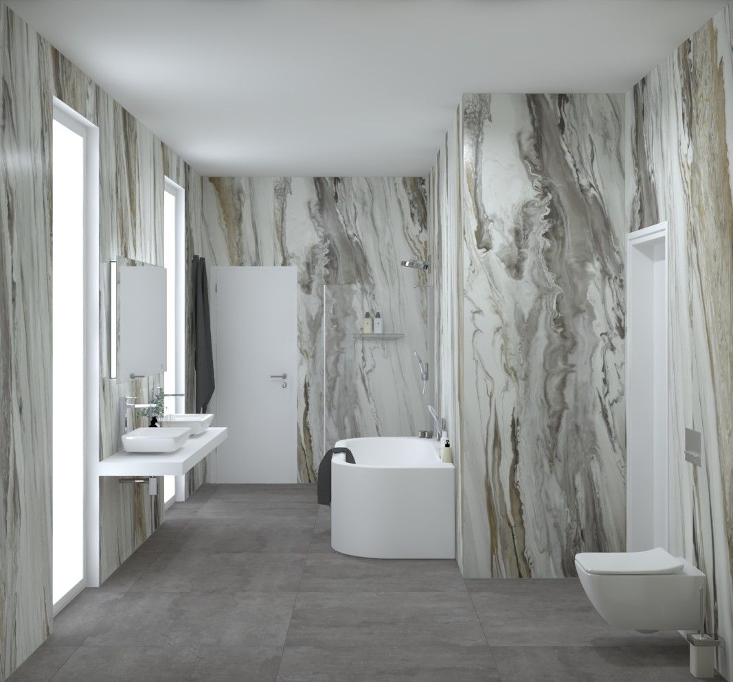 Unikátně v koupelně zařízené z této série vynikne solitérní vana. Zvýrazní se tak hloubková kresba, která je zcela výjimečná.